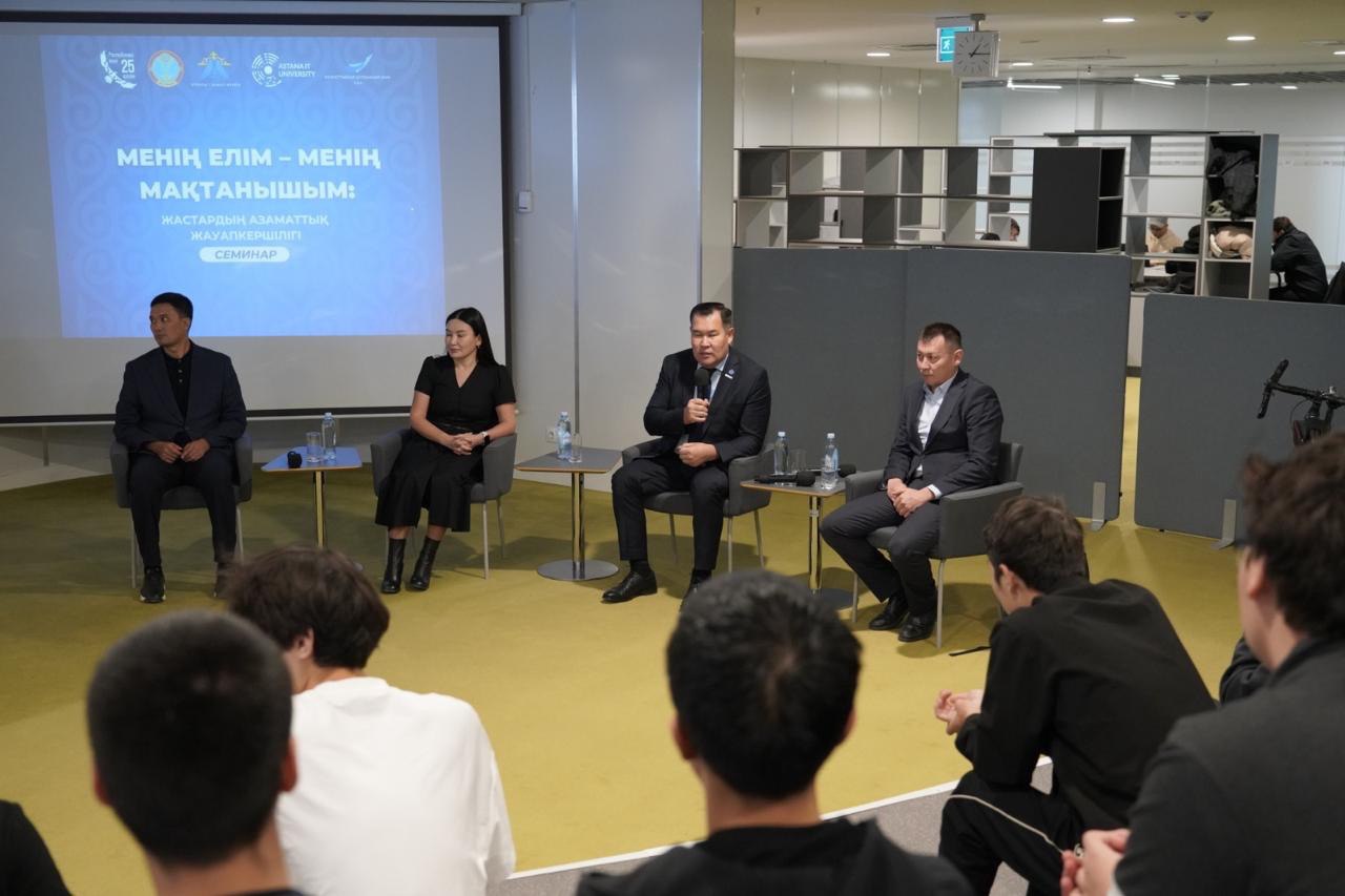 Семинарда жастар арасында азаматтық жауапкершілік пен белсенді өмірлік ұстанымды дамытуға бағытталған интерактивті талқылауларға басымдық қойылды.
