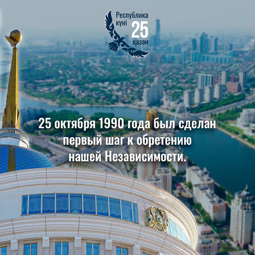 25 қазан Республика күні болып кездейсоқ таңдалған жоқ. 1990 жылдың дәл осы күні Қазақ Кеңестік Социалистік Республикасы Жоғарғы Кеңесінің №307-XII Жарлығымен Қазақ Кеңестік Социалистік Республикасының мемлекеттік егемендігі туралы Декларация қабылданды. Декларацияда Қазақ Кеңестік Социалистік Республикасының егемендігі жарияланып, Қазақстанның тәуелсіз мемлекет ретіндегі саяси-құқықтық негіздері жарияланды.