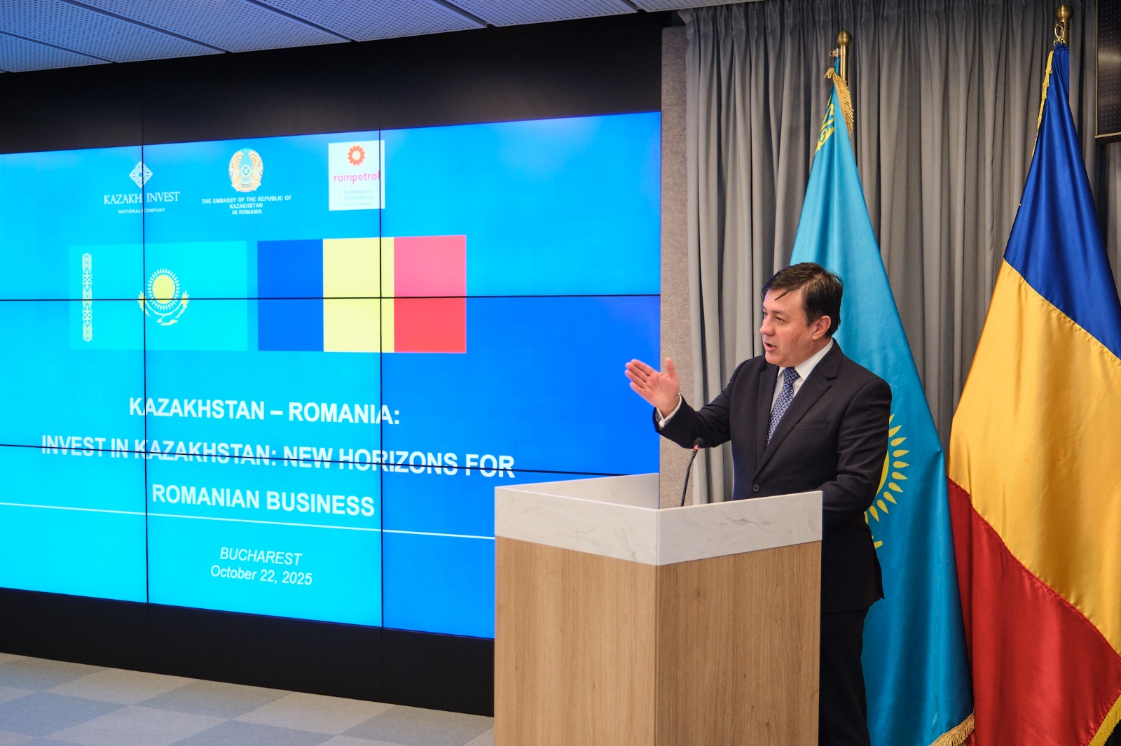 Бухарест, 2025 жылғы 22 қазан – Бухарест қаласында «Қазақстанға инвестициялар: румын бизнесі үшін жаңа көкжиектер» атты іскерлік форум өтті. Іс-шараны Қазақстан Республикасының Румыниядағы Елшілігі, «Kazakh Invest» ұлттық компаниясы» АҚ және KMG International (Rompetrol) компаниясы ұйымдастырды.