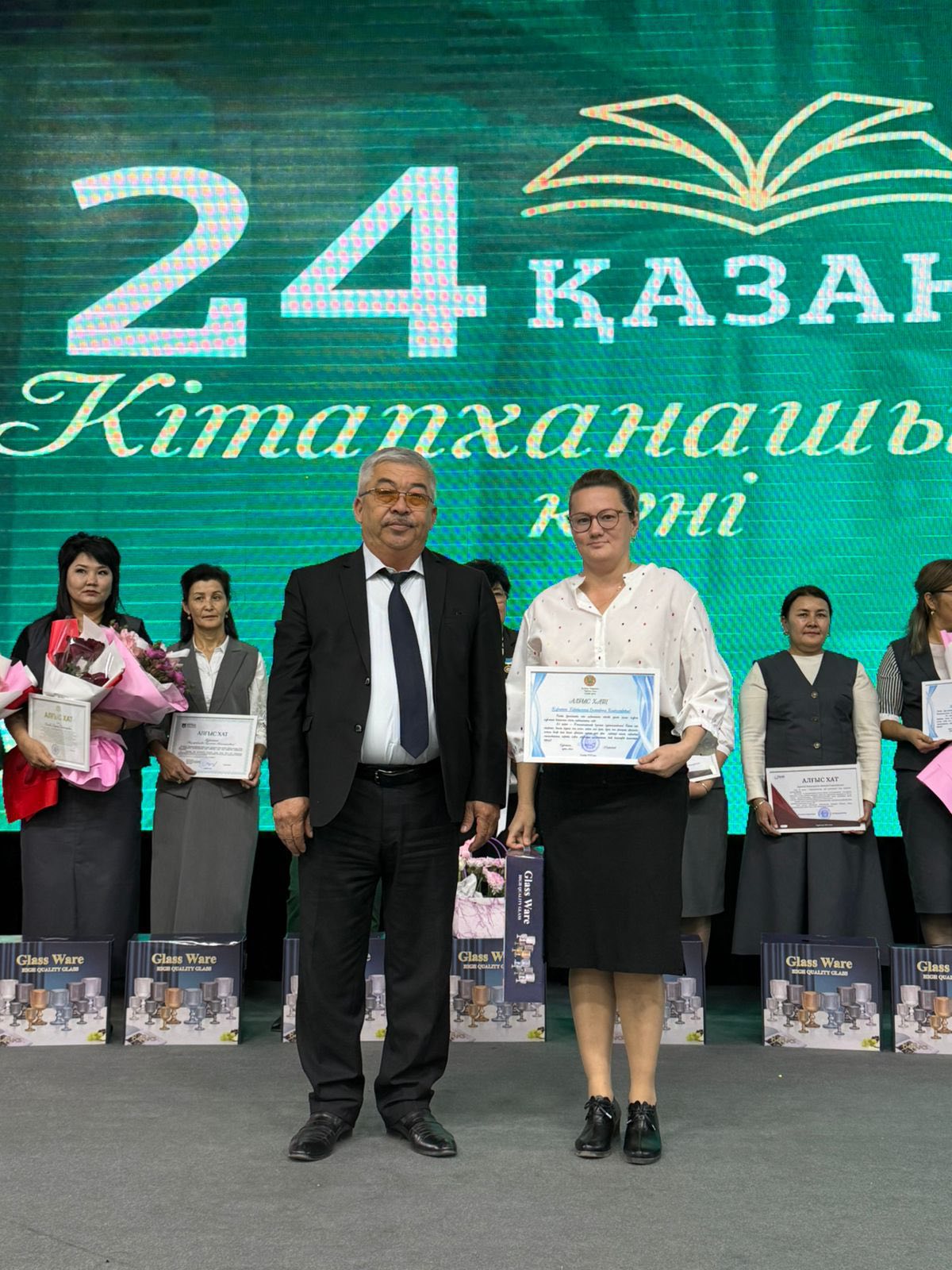 Салтанатты жиында бірқатар кітапхана қызметкерлеріне «ҚР Құрметті кітапханашысы» медалі, алғыс хаттар мен бағалы сыйлықтары табысталды.