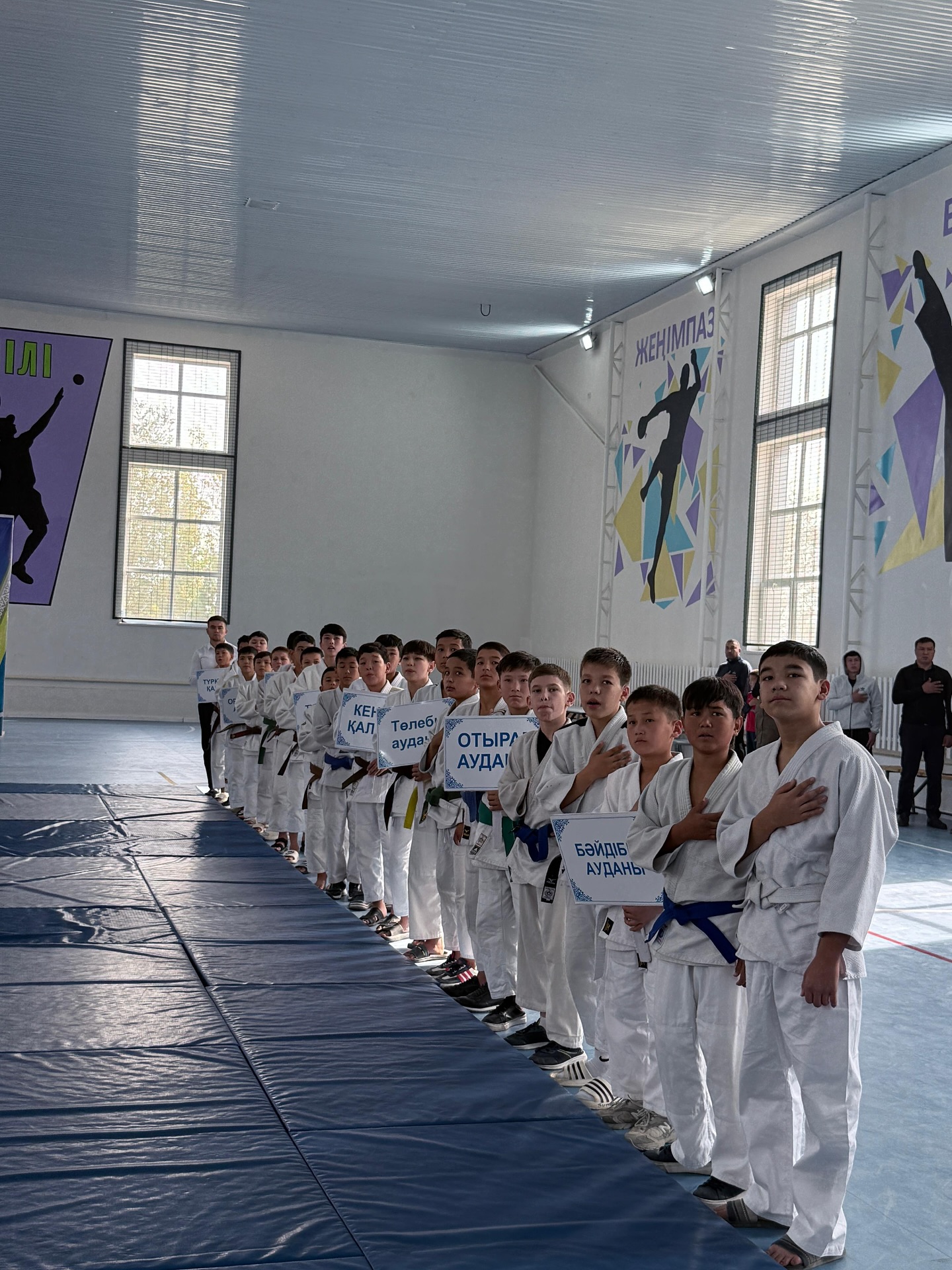 Жарыс О. Жарылқапов атындағы спорт кешенінде ұйымдастырылып, аймақтың түкпір-түкпірінен келген жас татамишыларды бір алаңға жинады. Біріншілікке Түркістан облысының аудан-қалаларынан 250-ге жуық спортшы қатысып, өз шеберліктерін көрсетуде.
