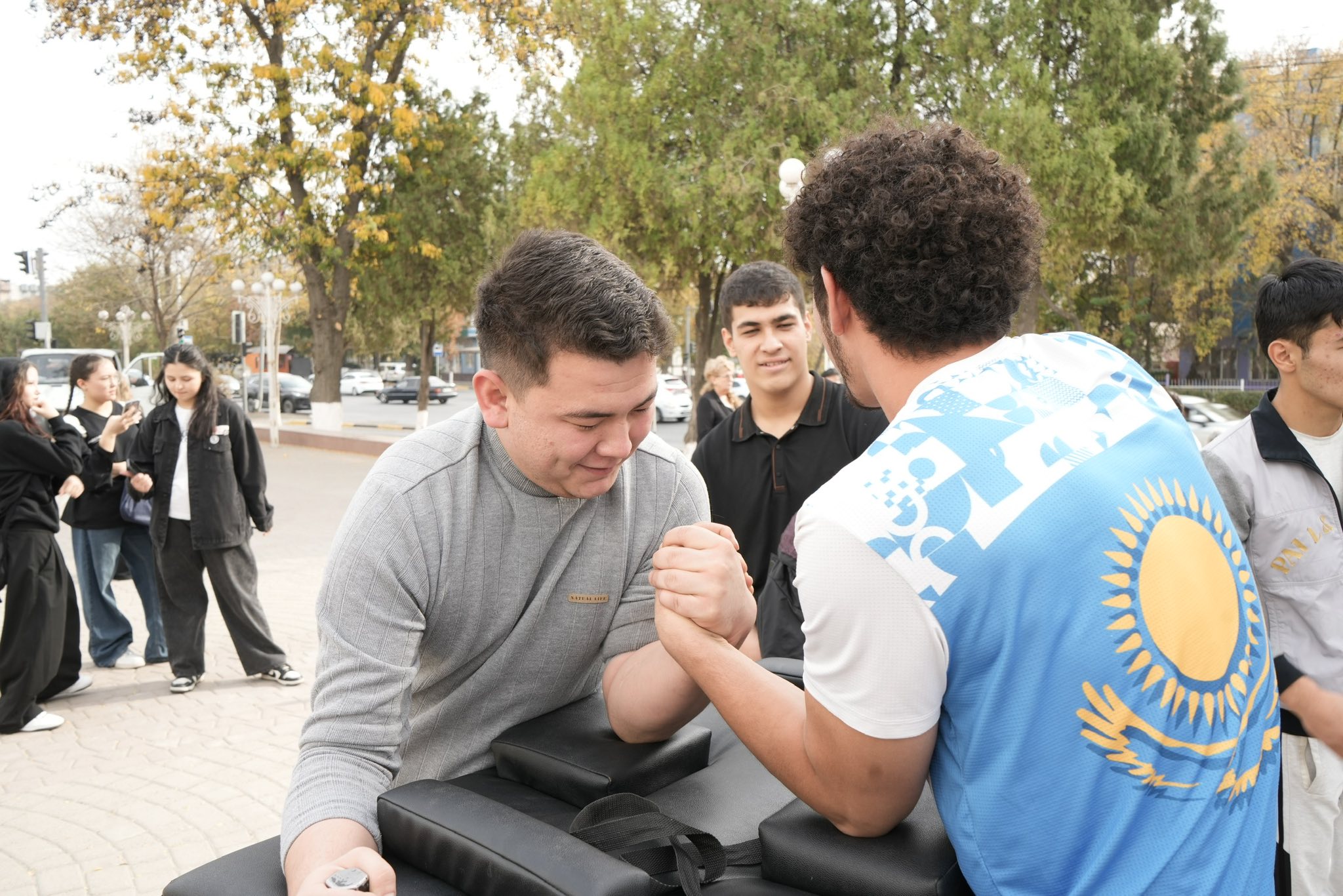 Шымкент қаласындағы Қазақстан халқы Ассамблеясы ғимаратының алаңында 25 қазан – Республика күніне арналған спорттық іс-шара өтті. Бұл мерекелік спорт бәсекесі елдің бірлігін, патриоттық рухты және салауатты өмір салтын дәріптеуді мақсат етті.
