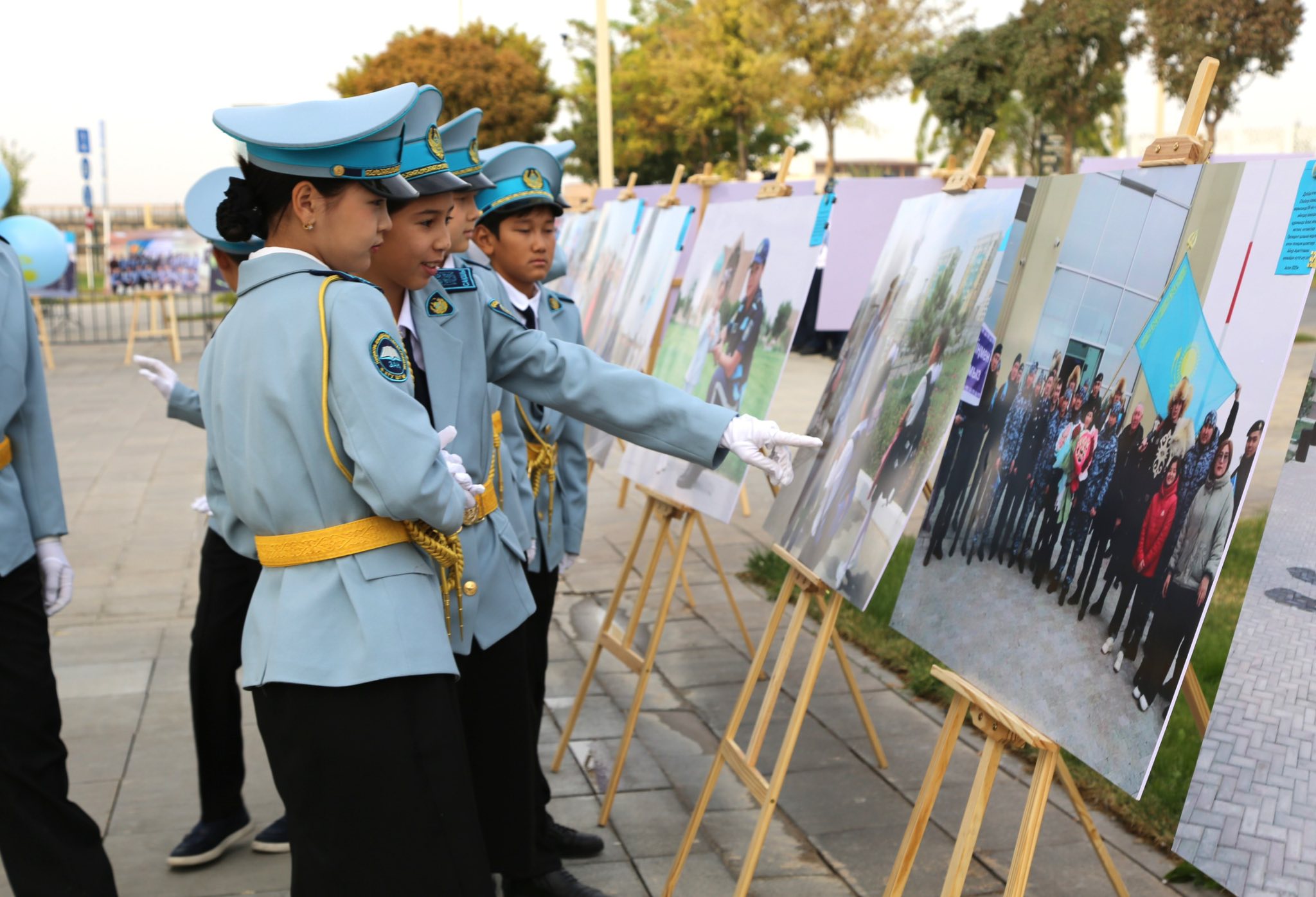 Яғни кішкентай тұрғындар қызметтік көлікке отырып көріп, ондағы құрылғылармен еркін танысып шықты. Жеке құрам мен “Жас сақшы” сыныбының оқушылары сапқа тұрып, салтанатты ашылу рәсімі өтті. Іс-шараға Түркістан облысының бас полицейі Мұрат Қабденовтің өзі арнайы қатысып, жастармен тілдесіп, тұрғындарға көрменің маңызын жеткізді.