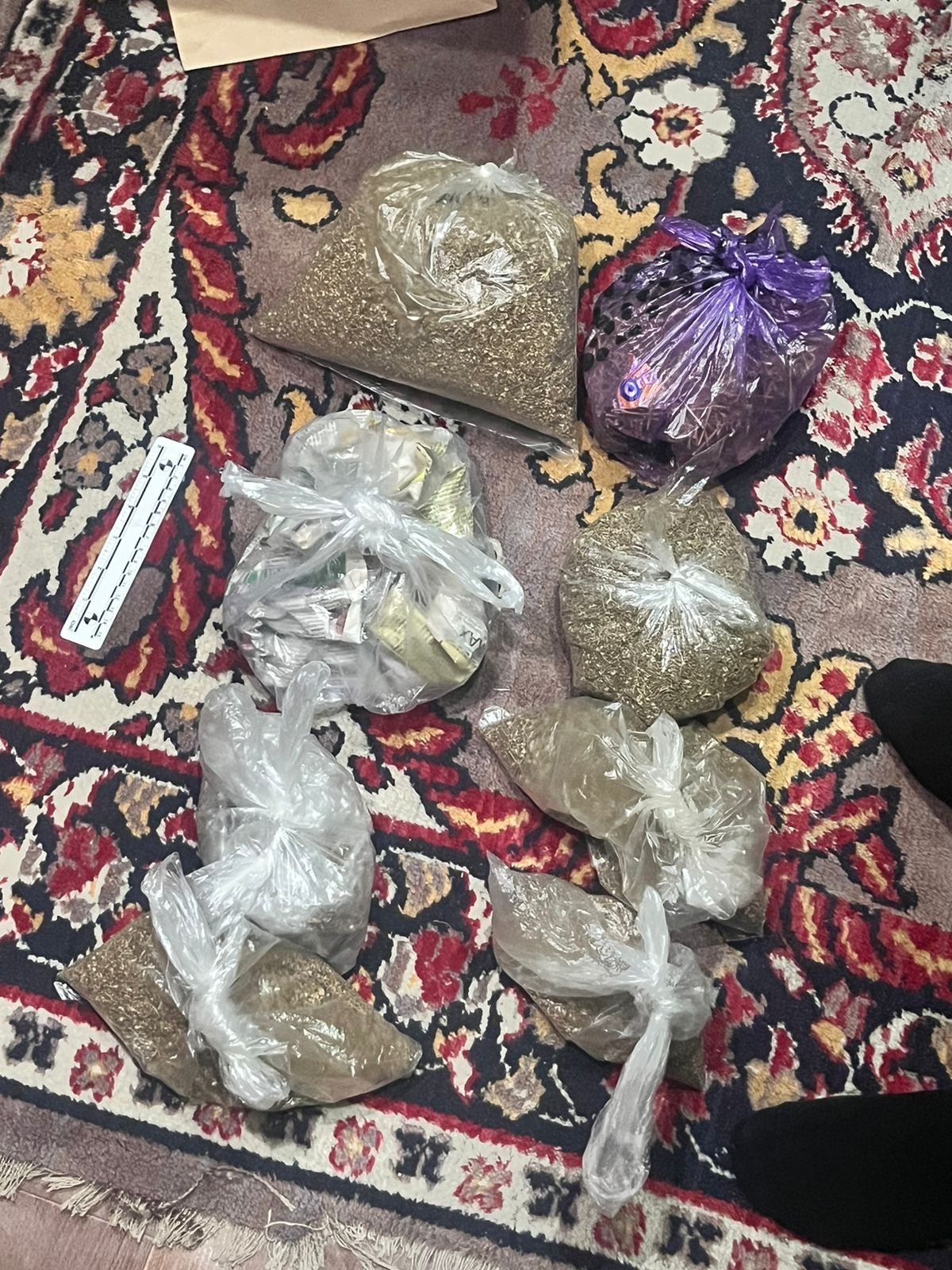 Айыпталушының тұрғылықты жерін тінту кезінде полиция қызметкерлері өсімдік тектес есірткі-марихуананы тауып, тәркіледі. Алынған заттың жалпы салмағы 5,6 килограмды құрады, бұл қолданыстағы заңнамаға сәйкес аса ірі мөлшерге жатады.
