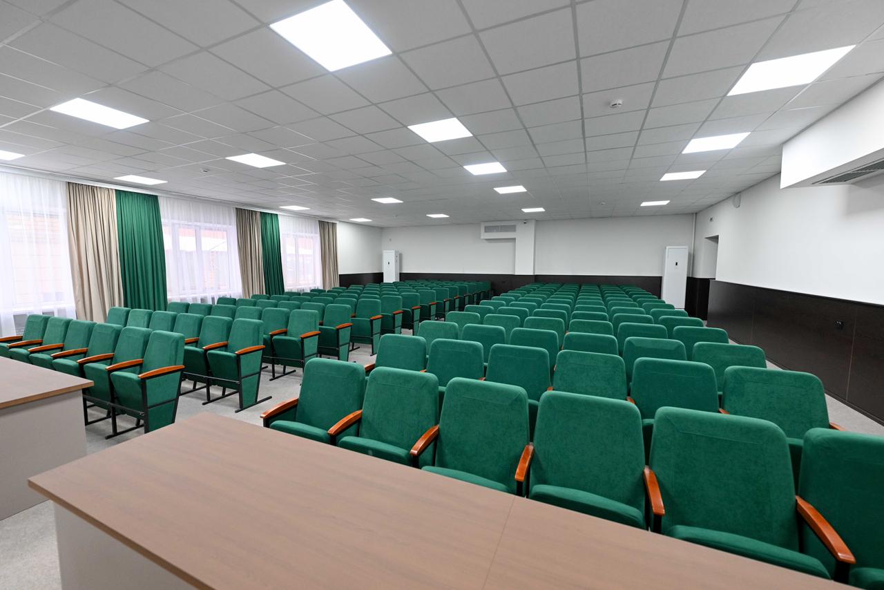 Полиция департаментінің емханасы бар төрт қабатты госпиталь ғимараты 1980 жылы салынған. Жалпы аумағы 2 212,2 шаршы метрді құрайды. Мұнда 150 кабинет орналасқан. 11 мыңға жуық полиция, төтенше жағдай, ұлттық қауіпсіздік қызметкерлеріне және сала ардагерлеріне медициналық қызмет көрсетіледі. Ғимаратта күрделі жөндеу жұмыстары жүргізілмеген.
