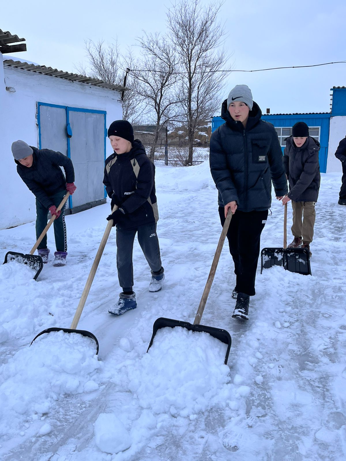 Қар күреу жұмыстарына ауылдың белсенді жастары қатысып, үлкенге құрмет, кішіге үлгі болатын игі істің жарқын көрінісін көрсетті.