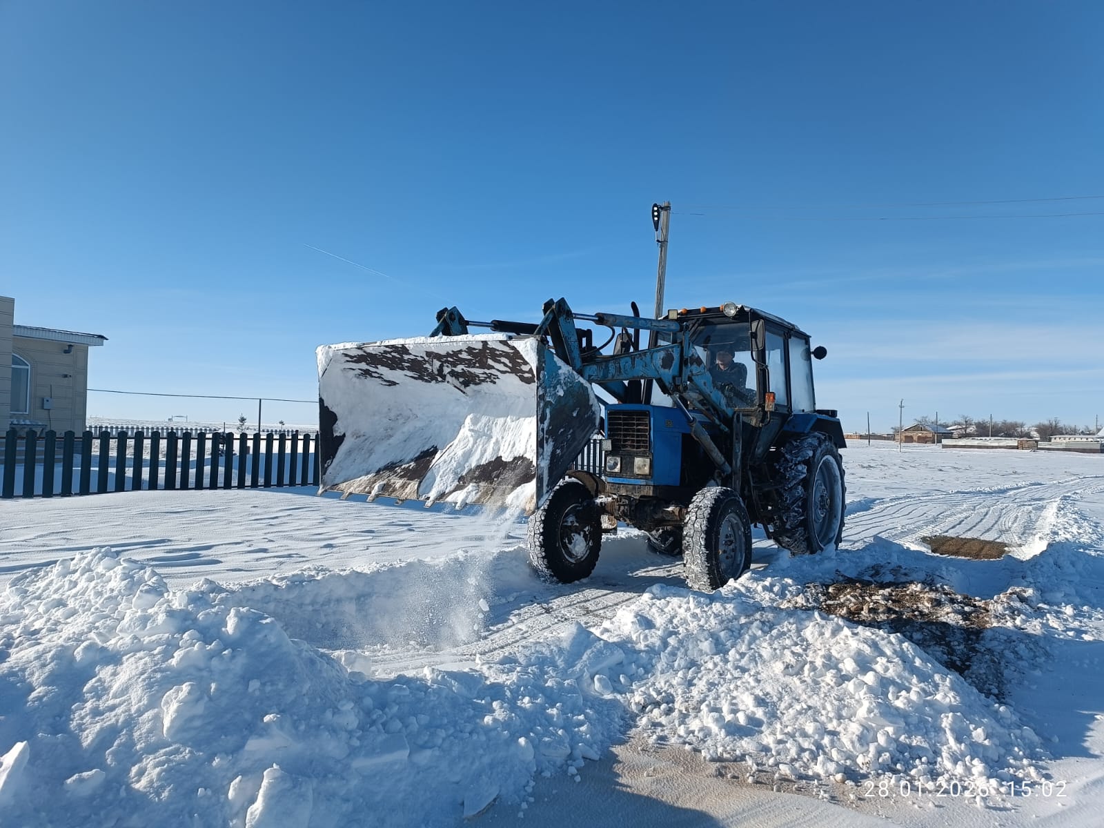 Ауыл ішіндегі жолдар қардан тазартылып, жаяу жүргіншіге және көлік қозғалысының жүруіне жағдай жасалды.