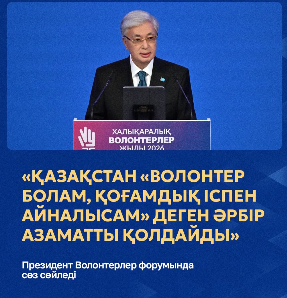 Волонтёрліктің маңызы халықаралық деңгейде де мойындалуда. Қазақстан Республикасының бастамасымен Біріккен Ұлттар Ұйымының Бас Ассамблеясы 2026 жылды Халықаралық волонтёрлер жылы деп жариялады. Бұл шешім еліміздің еріктілер қозғалысын дамытуға және ынтымақ, өзара қолдау мен азаматтық белсенділік құндылықтарын ілгерілетуге қосқан үлесінің айқын дәлелі болып табылады.