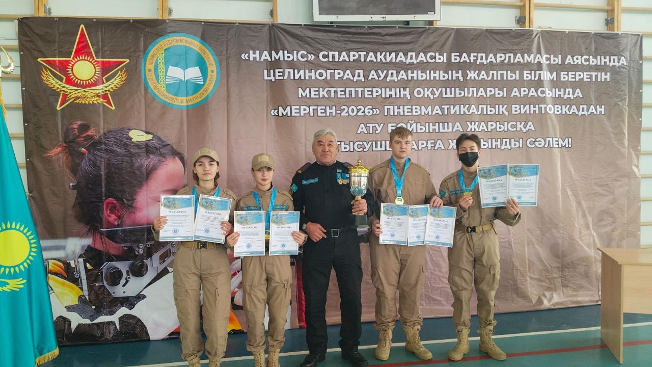“Намыс” спартакиадасы бағдарламасы аясында Целиноград ауданының жалпы білім беретін мектептерінің арасында “Мерген-2026” пневматикалық винтовкадан ату бойынша жарысында Родина ауылдық округінің жасөспірімдері топ жарды!