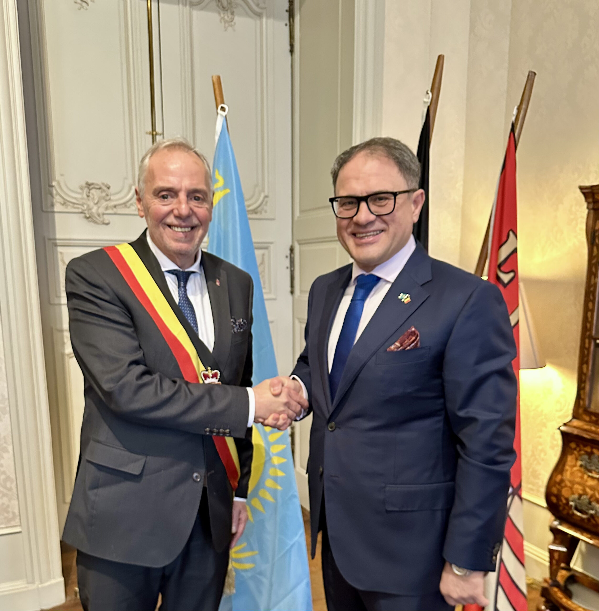 Льеж, 2026 жылғы 3 ақпан – Льеж провинциясына жұмыс сапары аясында Қазақстан Республикасының Бельгия Корольдігіндегі Елшісі Роман Василенко Льеж провинциясының губернаторы Эрве Жамармен кездесу өткізді.