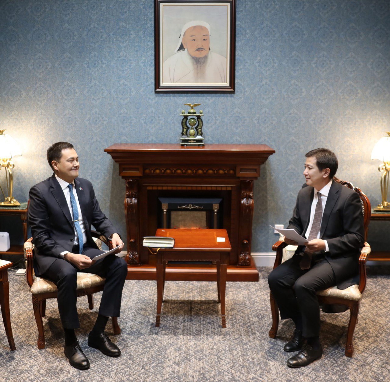 Ұлан-Батыр, 2026 жылғы 2 ақпан – Қазақстанның Моңғолиядағы Елшісі Алмас Сейтақынов Моңғолия Сыртқы істер министрінің орынбасары Гомборсүрэнгийн Амартүвшинмен келіссөздер өткізді.