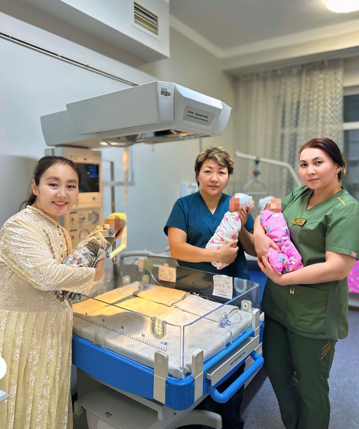 Үшемге жеке күтім бекеті бөлініп, сәбилер тәулік бойы дәрігерлердің бақылауында. Қазіргі таңда балалар салмақ қосып келеді, жағдайы тұрақты деп бағаланып отыр, алдағы уақытта ауруханадан шығаруға дайындалуда.