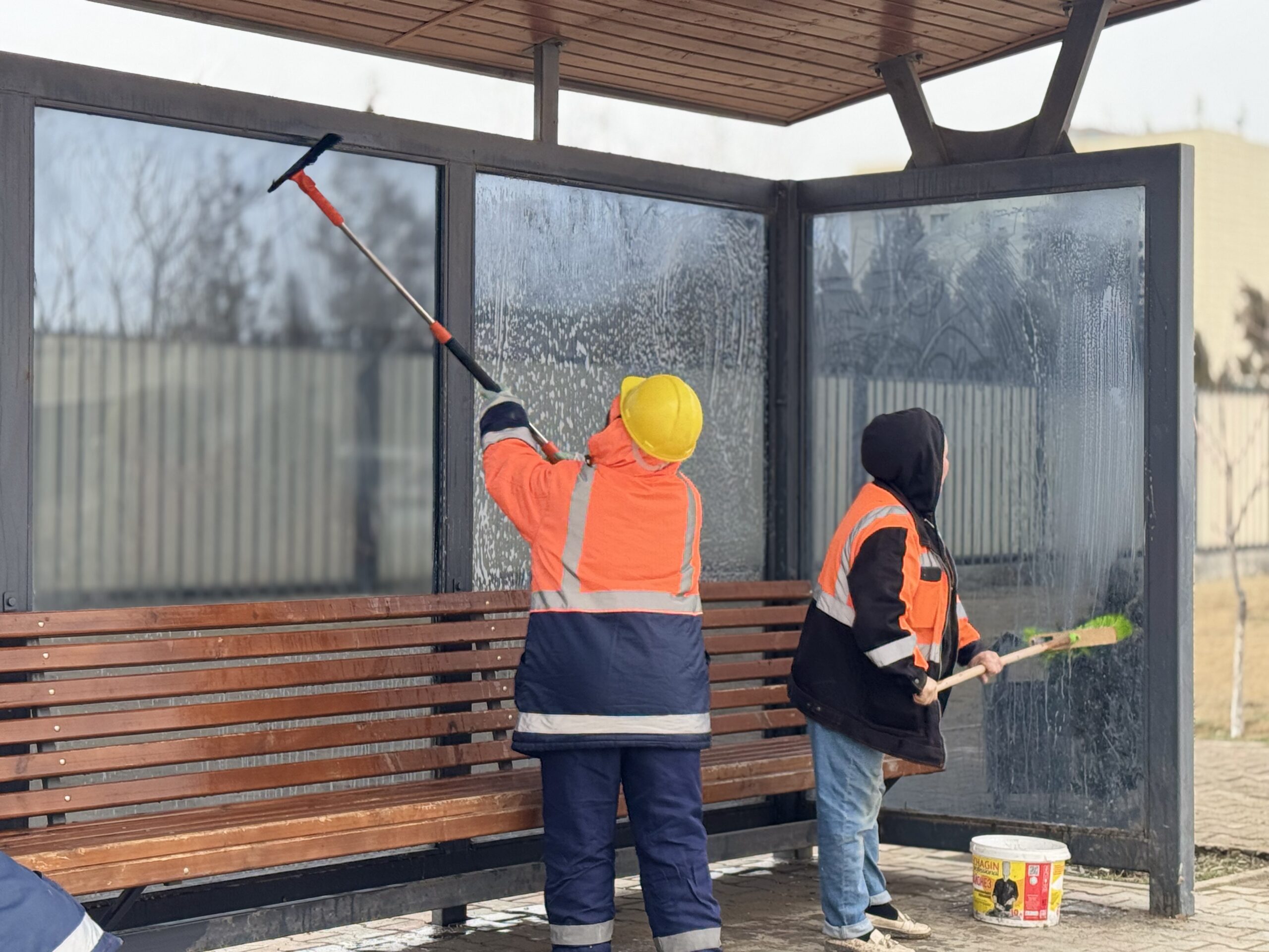 Сонымен қатар, қала аумағындағы қоғамдық көлік аялдамаларын жуу және санитарлық тазалау жұмыстары да жүйелі түрде жүргізілуде. Аталған жұмыстарға шамамен 80-ге жуық жұмысшы мен 12 бірлік арнайы техника жұмылдырылған.