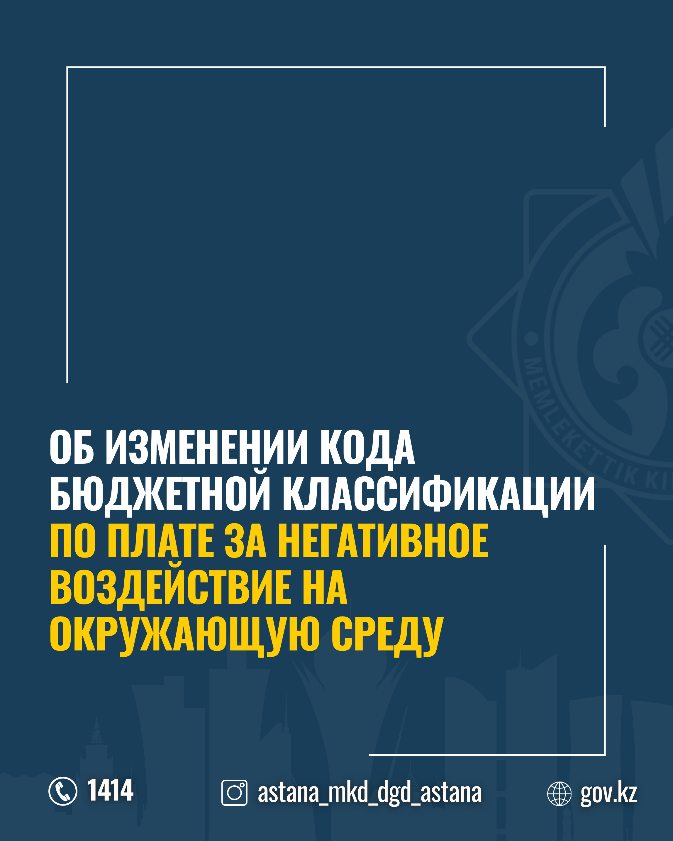 Қоршаған ортаға теріс әсер еткені үшін төлем бойынша бюджеттік сыныптама кодының өзгеруі туралы