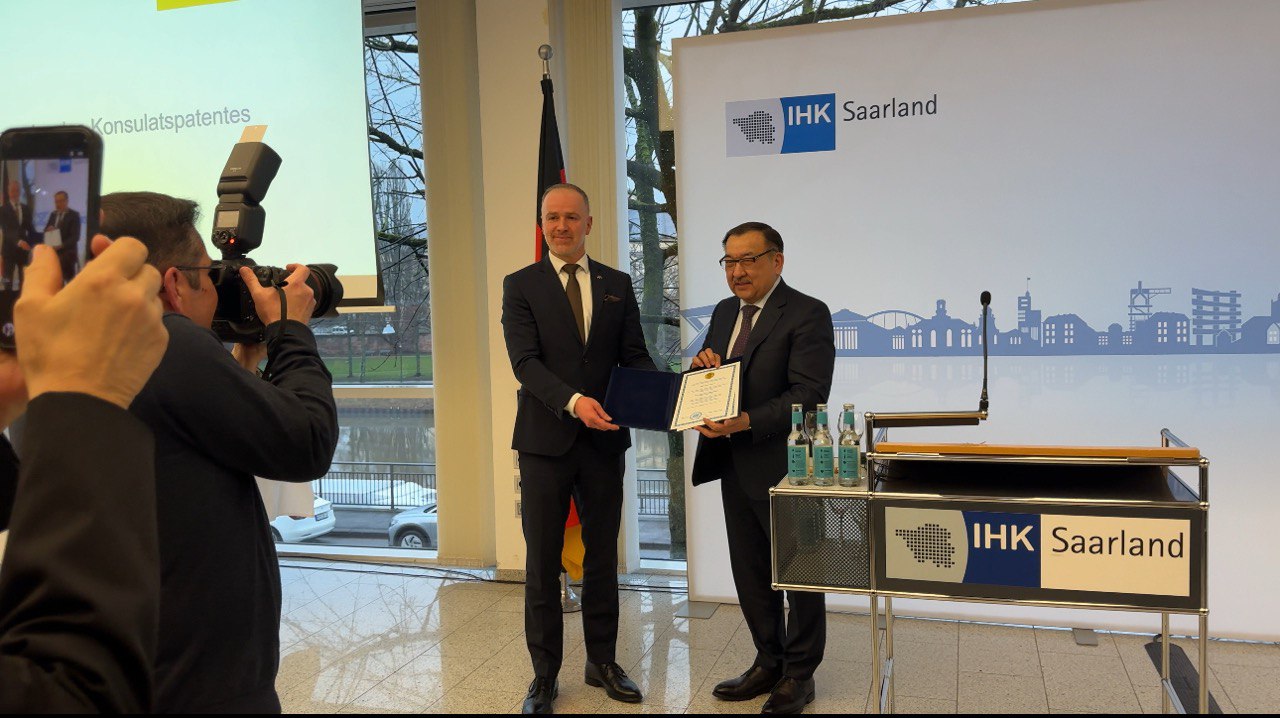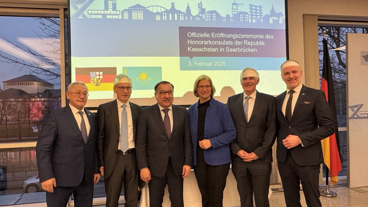 Саарбрюккен, 2026 жылғы 3 ақпан – Германия Федеративтік Республикасының Саар федералдық жеріндегі Саарбрюккен қаласында Қазақстан Республикасының Құрметті консулдығының салтанатты ашылу рәсімі өтті. Іс-шара Саар жерінің Сауда-өнеркәсіп палатасының (IHK Saarland) ғимаратында ұйымдастырылып, Қазақстан мен Германия арасындағы өңірлік деңгейдегі қарым-қатынастарды дамыту жолындағы маңызды қадамның бірі болды.