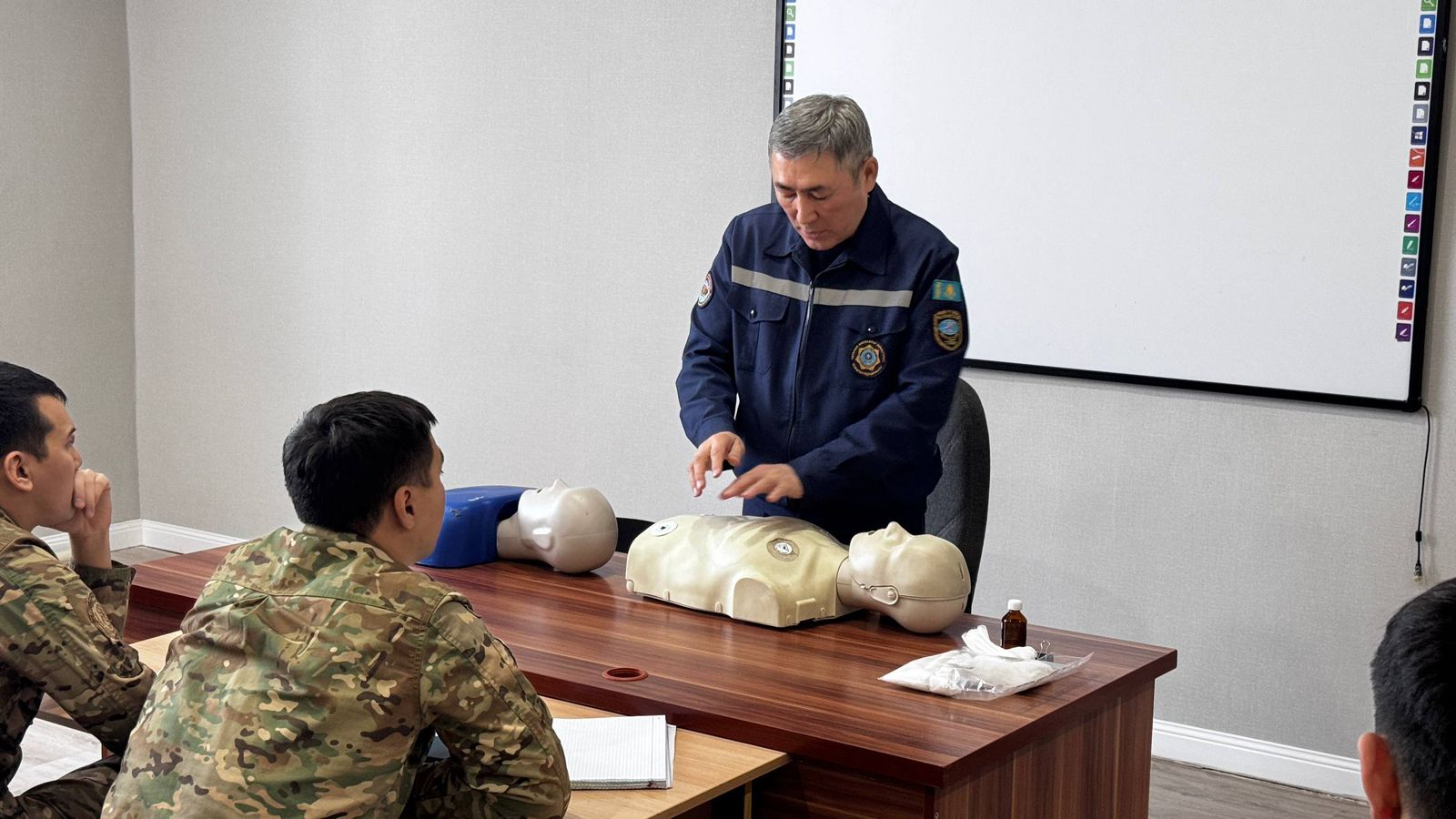 Астана қаласында Апаттар медицинасы орталығының дәрігерлері төтенше жағдайларда алғашқы медициналық көмек көрсетудің негіздеріне арналған практикалық сабақ өткізді. Іс-шара барысында білім алушылар жарақаттар, қан кету, есінен тану және тыныс алудың тоқтауы сияқты шұғыл жағдайларда әрекет етудің негізгі алгоритмдерімен танысты. Жүрекке жанама массаж жасау және тыныс алу жолдарының өткізгіштігін қамтамасыз ету дағдыларын практикалық тұрғыда меңгеруге ерекше назар аударылды. Өткізілген сабақ білім алушылардың дайындық деңгейін арттыруға және төтенше жағдайларда дұрыс әрекет етуге дайындықты қалыптастыруға ықпал етті.