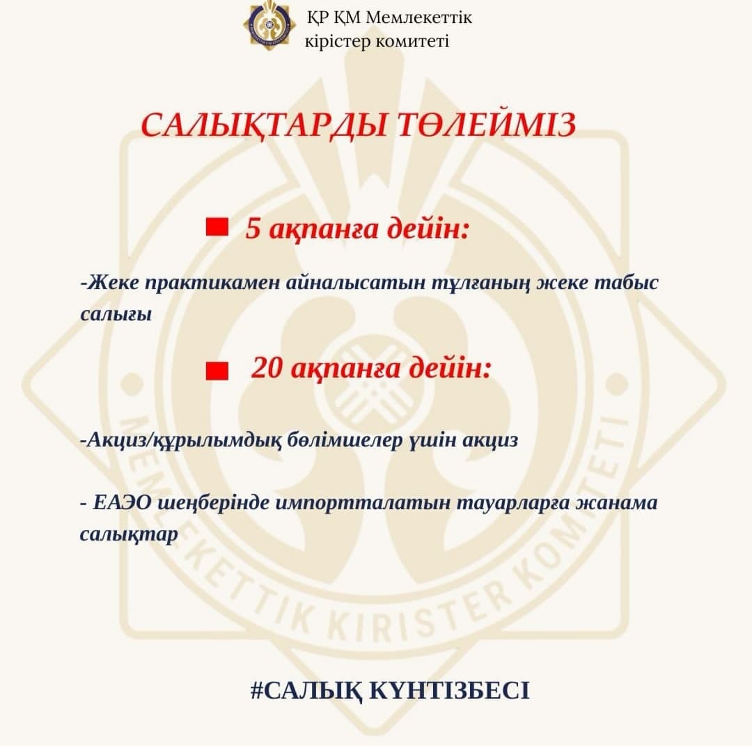 Естеріңізге сала кетейік, салық есептілігін тапсыру мерзімі жақындап келеді. Салық міндеттемелерін уақтылы орындауды ұмытпаңыздар, қажетті құжаттарды алдын-ала дайындап, тапсыруды ұсынамыз.