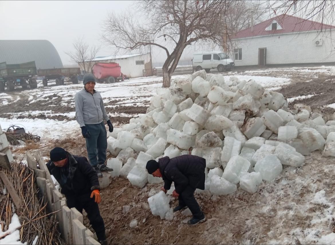 «Жалағаш орман және жануарлар дүниесін қорғау жөніндегі мемлекеттік мекемесі» ағаш көшеттерін сақтайтын мұзханаға мұз салу жұмыстарын жүргізуде.