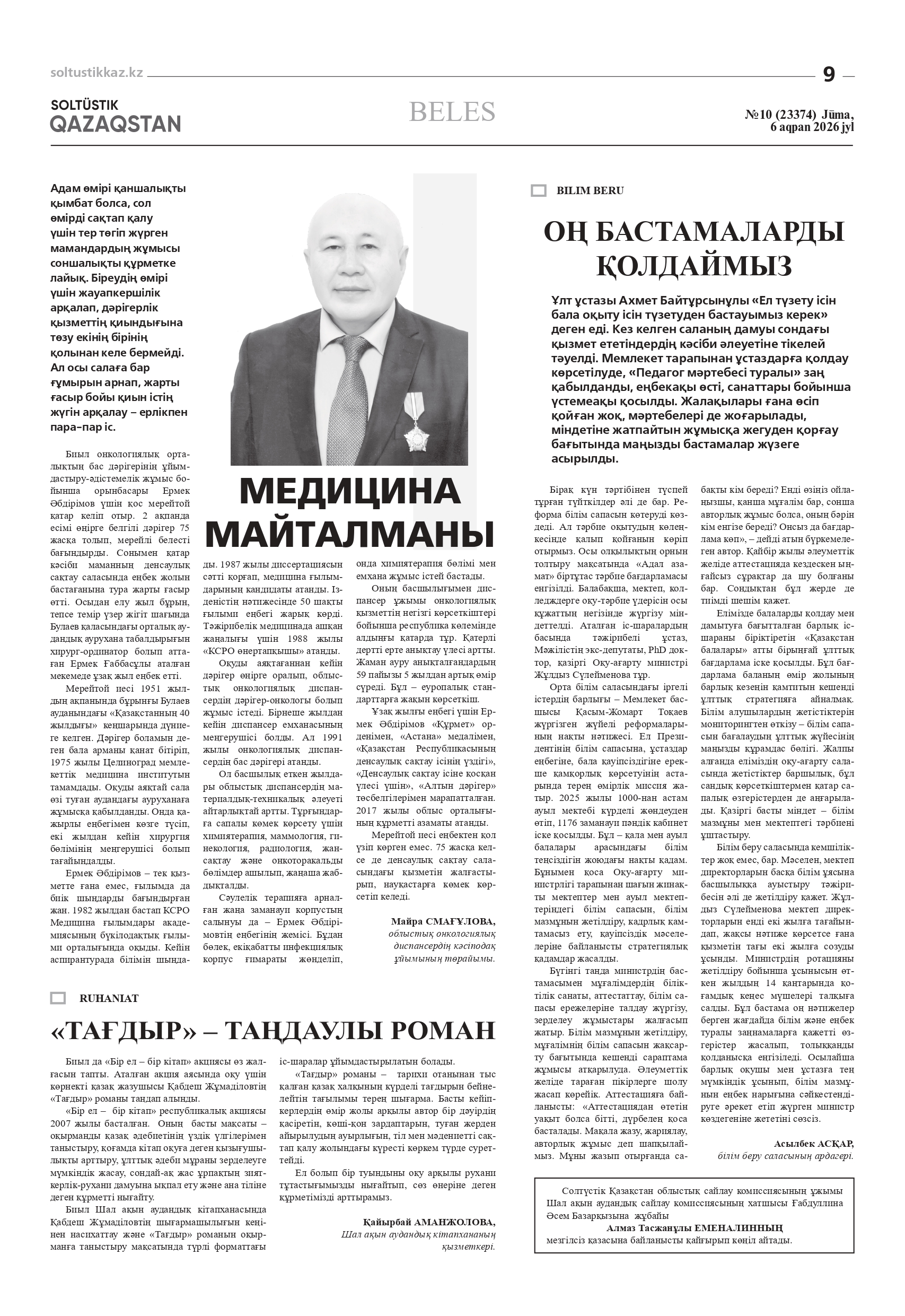 Автор ұстаз мәртебесін арттыру, білім сапасын жақсарту және тәрбие жұмысын күшейту бағытындағы бастамаларға кәсіби көзқарасын ұсынады.