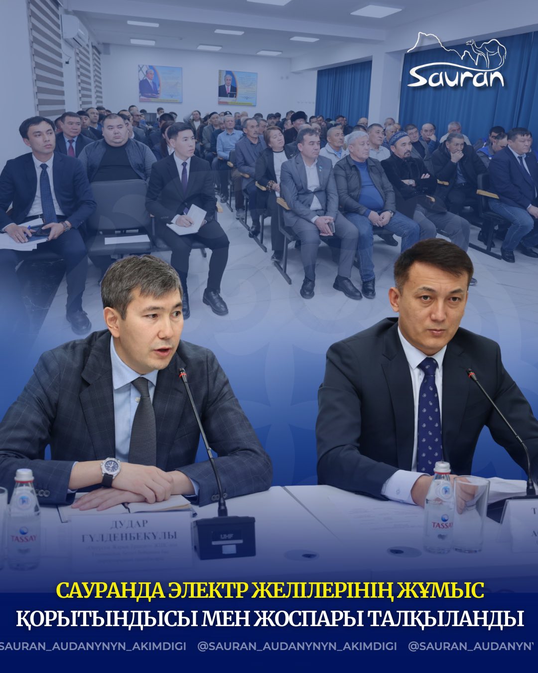 Сауран ауданының әкімі Мақсат Таңғатаровтың төрағалығымен «Оңтүстік Жарық Транзит» ЖШС-нің 2025 жылы атқарған жұмыстары және 2026 жылға жоспарлары бойынша мәжіліс өтті. Жиында аудан аумағындағы электр қуатының тұрақтылығы, желілердің техникалық жай-күйі және алдағы кезеңдегі нақты міндеттер қаралды. Мәжіліске аудандық мәслихат төрағасы Сержан Байсбаев, аудан әкімінің орынбасарлары, ауылдық округ әкімдері, Түркістан аудандық электр желілерінің басшысы Адилбек Анарбаев, сондай-ақ «Оңтүстік Жарық Транзит» ЖШС бас директорының техникалық бөлігі бойынша орынбасары Дидар Гүлденбекұлы қатысты.
