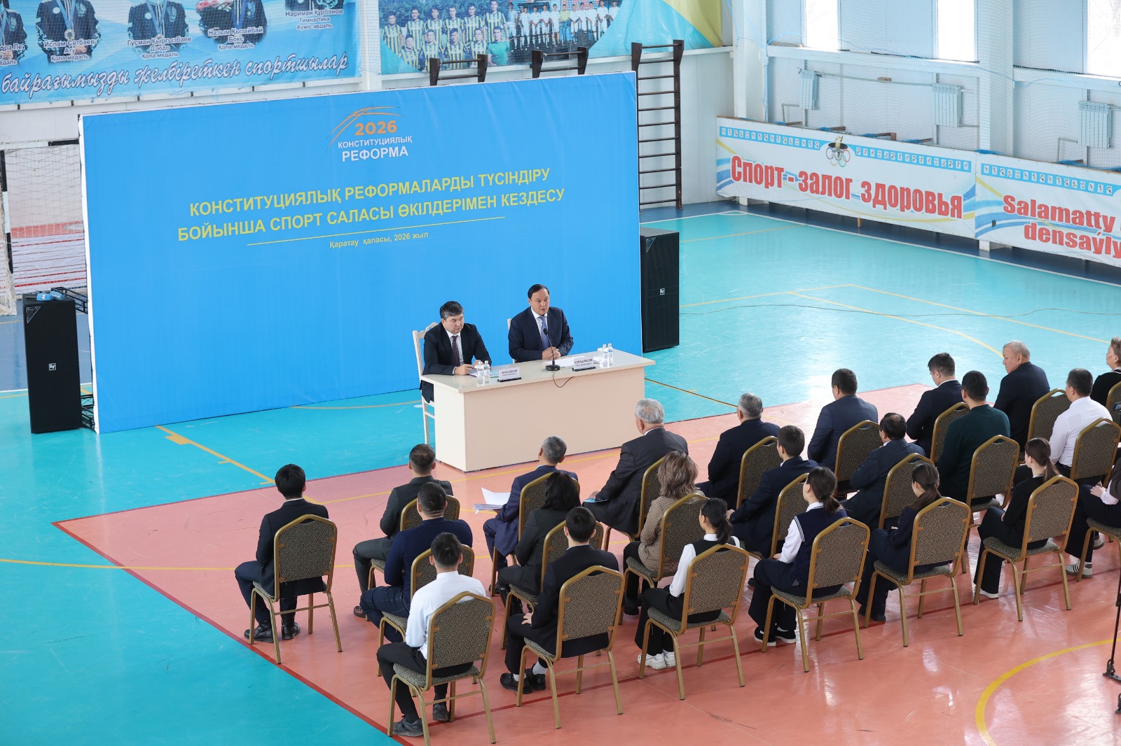 Өңір басшысы Қаратау қаласындағы дене шынықтыру-сауықтыру кешенінде спортшылар және олардың жаттықтырушыларымен жүздесті. Кездесу барысында Ербол Қарашөкеев Конституцияның жаңа жобасын жан-жақты таныстырып, Ата заңның басты идеяларының бірі ретінде білім мен ғылымды, мәдениет пен инновацияны дамыту айқындалғанын атап өтті. Бұл бағыттар өскелең ұрпақтың бәсекеге қабілеттілігін арттыруға негіз болатынына сенім білдірді.