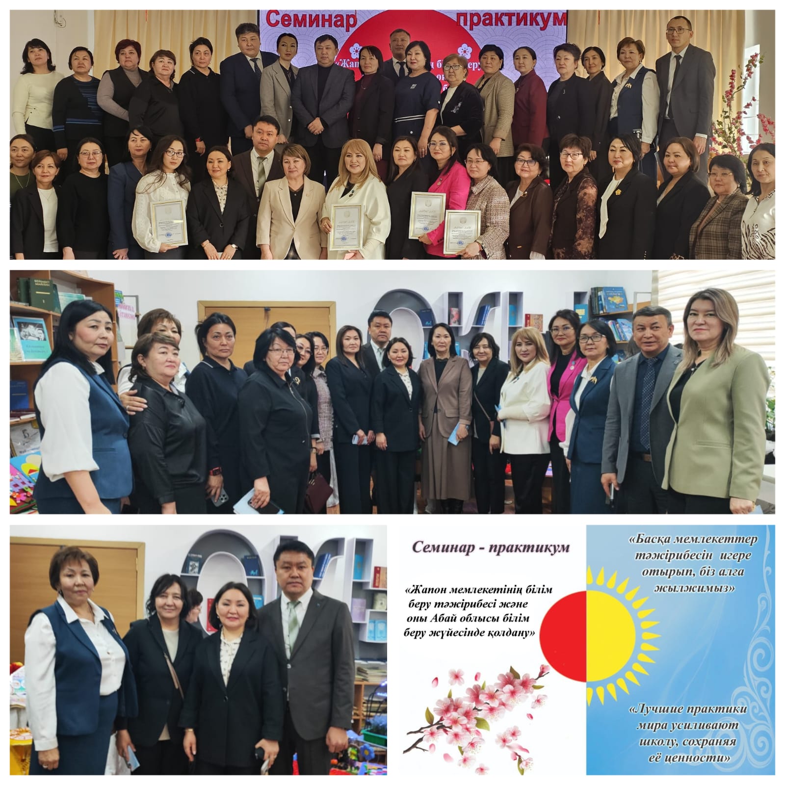 «Жапон мемлекетінің білім беру тәжірибесі және оны Абай облысының білім беру жүйесінде қолдану»тақырыбында облыстық семинар-практикум өтті. Семинар Абай облысы білім беру мекемелерінде жапондық білім беру жүйесінің тиімді тәжірибелерін енгізуге арналды.Пленарлық бөлімде жапондық білім беру тәжірибесінің білім алушылардың жауапкершілігін қалыптастыруға, мектеп мәдениетін дамытуға және қолайлы білім беру ортасын құруға бағытталған маңыздылығы атап өтілді.