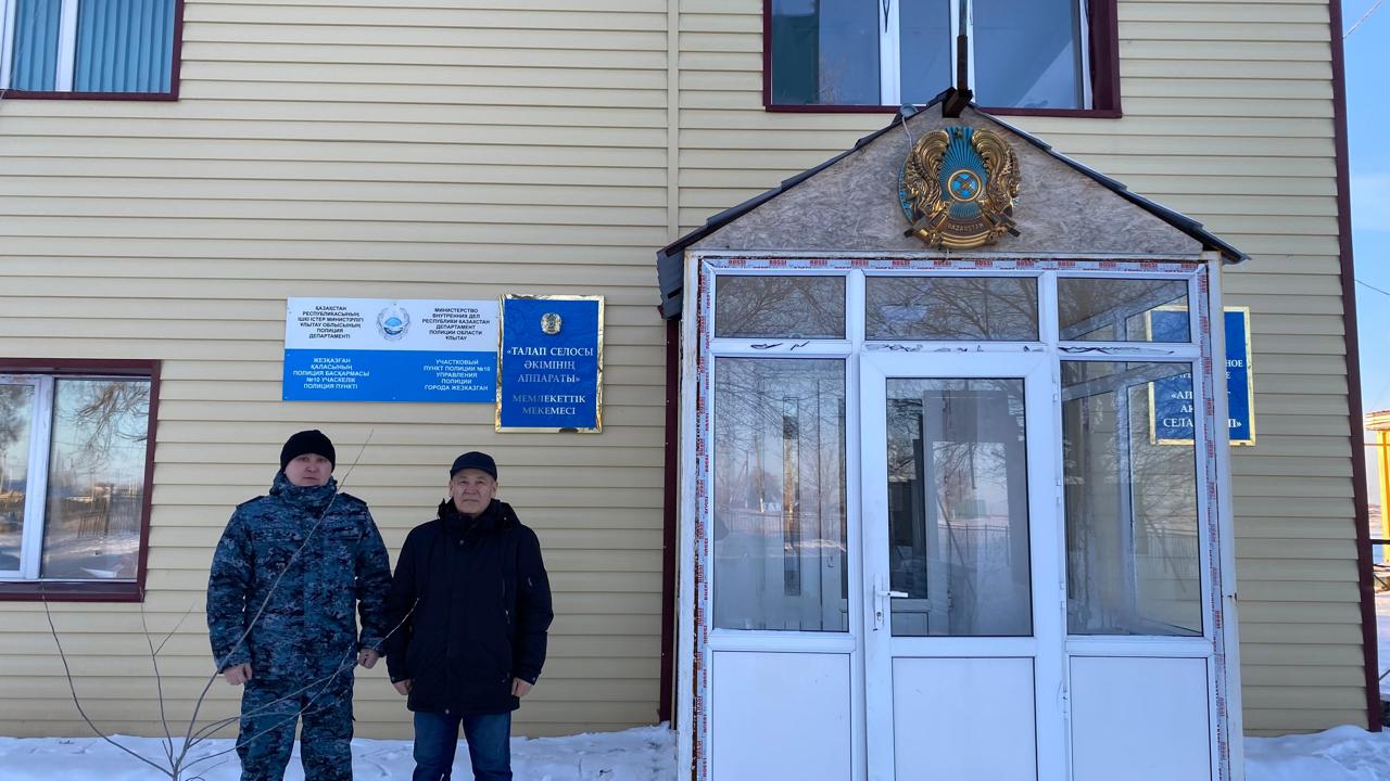 🔹 Құқықтық стандарттардың сақталуын қамтамасыз ету және учаскелік полиция пунктінің қызметін бағалау мақсатында өңірлік өкіл А.Б. Каримов Ұлытау облысы ПД Жезқазған қ. ПБ ҚҚБ Талап селолық округінің №10 учаскелік полиция пункті