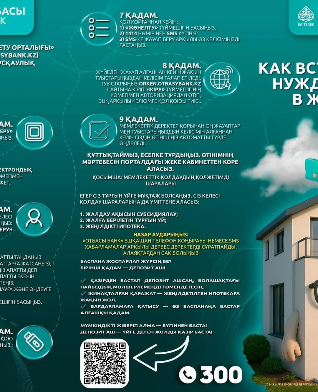 Барлық кезектегілер мен жаңа өтініш берушілер отбасы банкінің қарамағында “тұрғын үймен қамтамассыз ету орталығының” ORKEN.OTBASYBANK.KZ электрондық жүйесіне көшіріледі.
