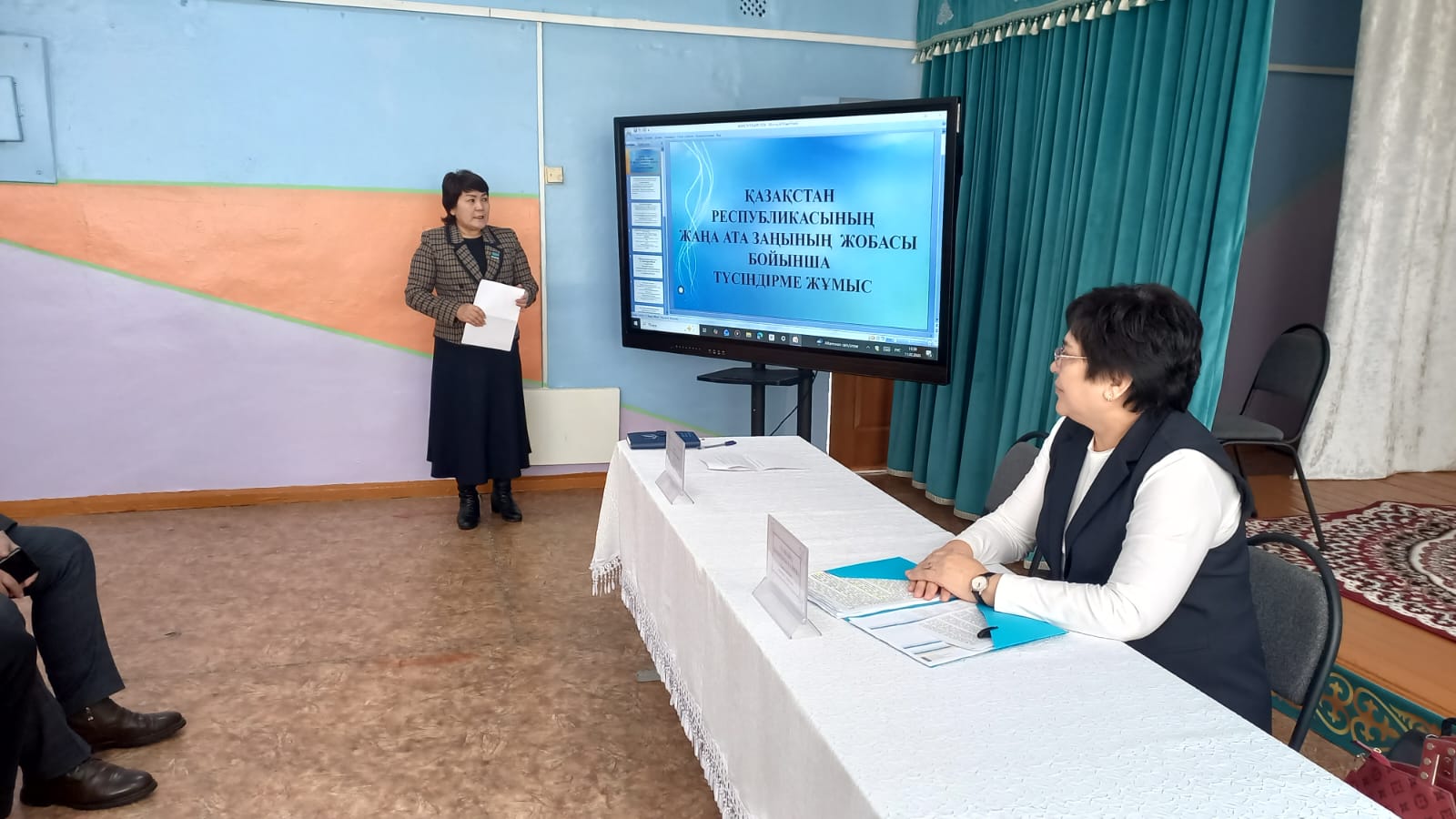 Желілік кестеге сәйкес аудандық мәслихат төрағасы Г. Калиева мен аудандық мәслихат депутаты Б.А. Касымова Алмасай ауылындағы Абай атындағы орта мектептің педагогикалық ұжымымен кездесу өткізді. Кездесу барысында елімізде жүзеге асырылып жатқан конституциялық реформаларды талқылап, реформаның негізгі бағыттарына ерекше назар аударылды: