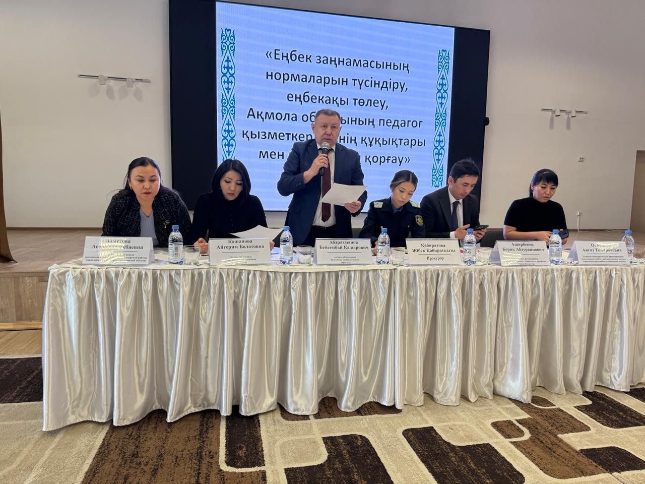 Отырыс барысында педагог қызметкерлердің еңбек құқықтарын сақтау, еңбек заңнамасының нормаларын түсіндіру, еңбекақы төлеу және әлеуметтік қолдау мәселелері қаралды. Білім беру ұйымдарында еңбек кепілдіктерін қамтамасыз етуге қатысты өзекті мәселелер талқыланып, құқық бұзушылықтардың алдын алу шаралары айқындалды.