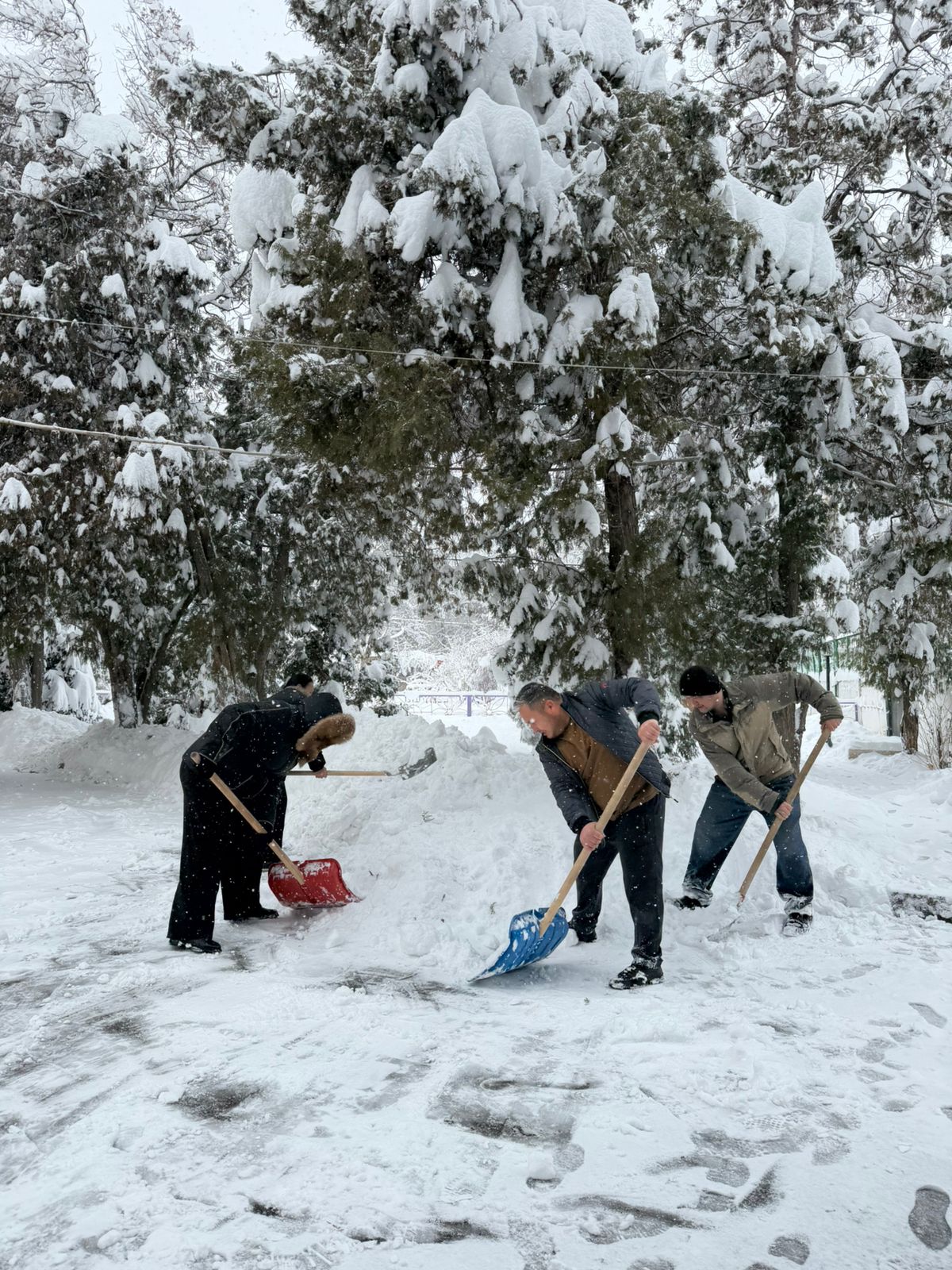 Қолайсыз ауа райында қарап қалмай, бірқатар ұйым-мекеме қызметкерлері қолға күрек алды. Әкімдік бөлімдерінің мамандары да игі іске үлес қосып, қала аумағында қар тазалауға шықты.