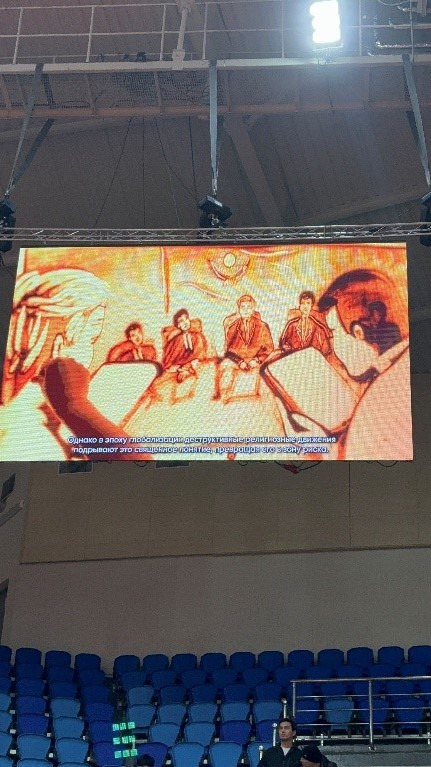 Жастардың діни сауаттылығын арттыру және дұрыс құндылық қалыптастыру мақсатында чемпионат барысында спорт кешенінің LED-экрандарында «Спорт – терроризм мен экстремизмге қарсы» атты бейнероликтер көрсетілді.
