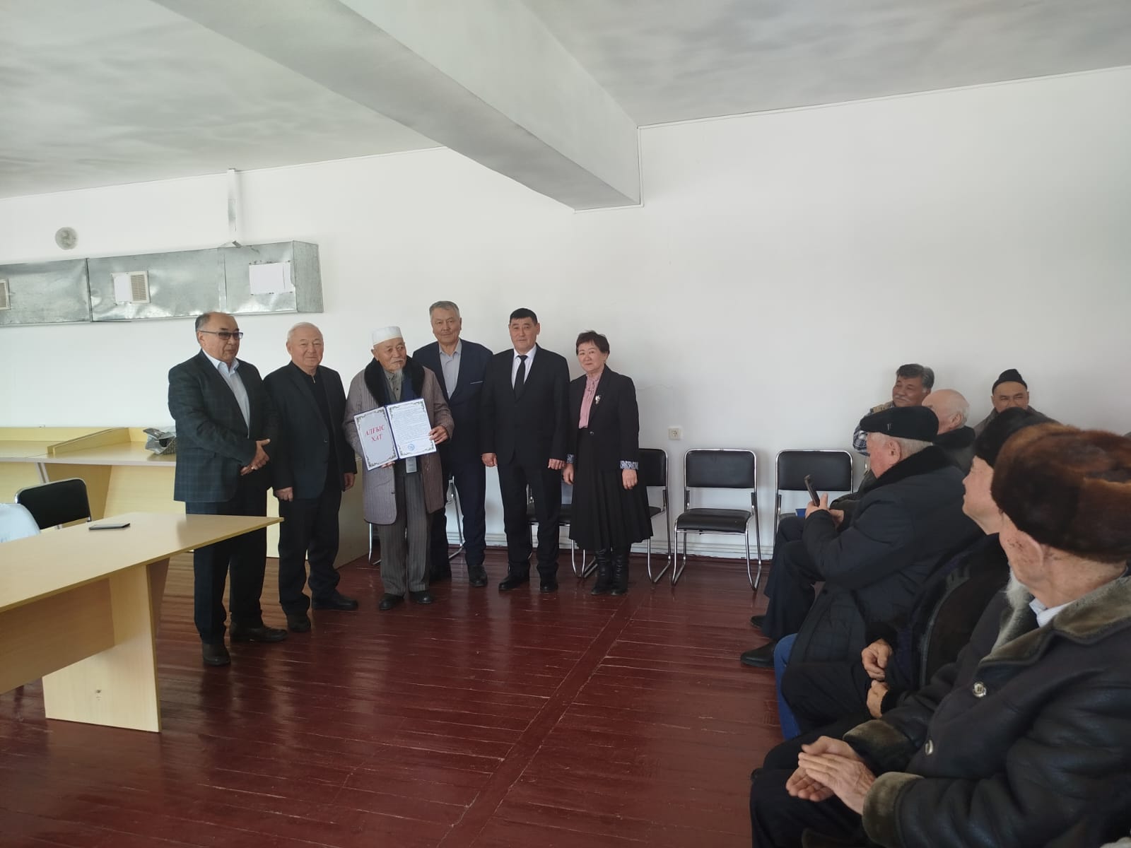 Аудандық ардагерлер кеңесі тарапынан Дауысқожа Нұрбекұлына арнайы «Алғыс хат» табысталып, құрмет көрсетілді.