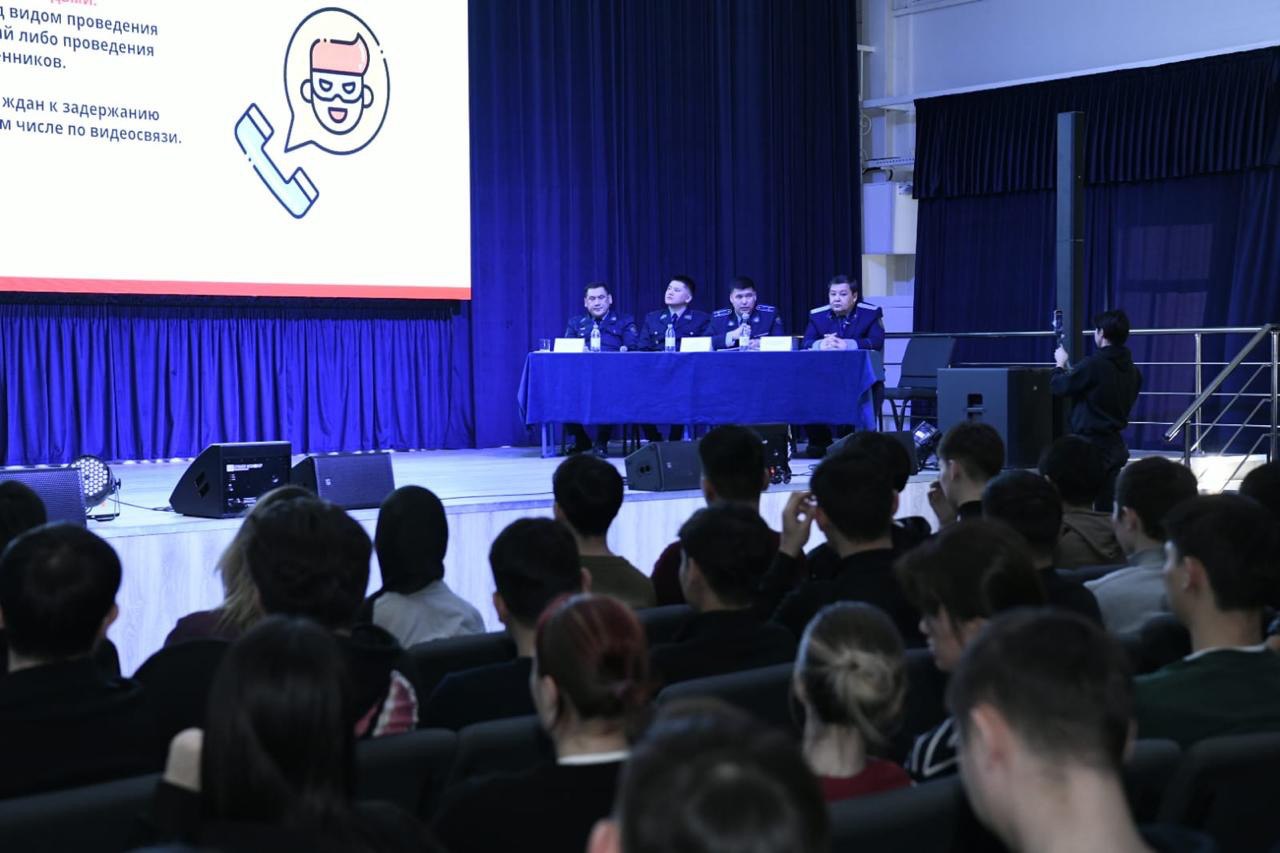 Кездесу барысында құқық қорғау органдарының қызметкерлері жастарды толғандыратын өзекті сұрақтарға жауап беріп, қылмыстар үшін жауапкершілік, алаяқтықтың негізгі тәсілдері мен схемалары, жастарды есірткі заттарын таратуға тарту әдістері, сондай-ақ азаматтардың құқықтары мен заңды мүдделерін қорғау шаралары туралы түсіндірмелер берді.
