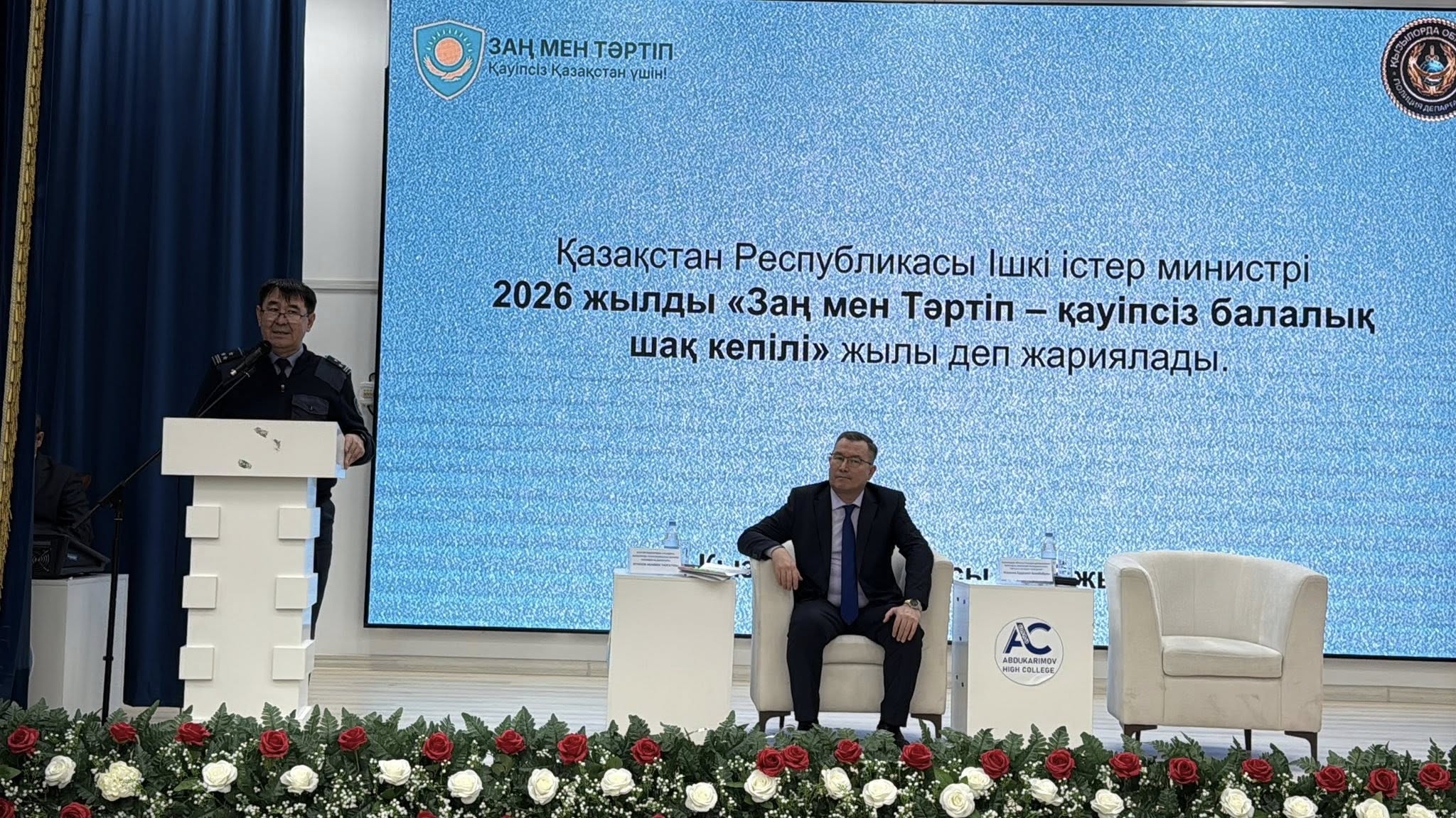 «Заң мен тәртіп» қағидаты аясында Қызылорда облысы Полиция департаменті Қоғамдық қауіпсіздік басқармасының бастығы, полиция полковнигі Е. Жаукеев Қызылорда қаласындағы И. Әбдікәрімов атындағы политехникалық жоғары колледжінің студенттерімен кездесу өткізді. Айта кету керек, Қазақстан Республикасы Ішкі істер министрлігі 2026 жылды «Заң мен тәртіп – қауіпсіз балалық шақ кепілі» жылы деп жариялаған болатын. Осыған орай ұйымдастырылған іс-шараға аталған оқу орнының 1–3 курс студенттері қатысты. Іс-шараның негізгі мақсаты – жасөспірімдер арасындағы құқықбұзушылықтың алдын алу, кәмелетке толмағандардың заңға қайшы әрекеттеріне қоғамда төзбеушілік көзқарас қалыптастыру және жастардың құқықтық сауаттылығын арттыру. Кездесу барысында сала басшылары нақты өмірлік оқиғаларға тоқталып, студенттердің көкейінде жүрген сұрақтарына жан-жақты жауап берді. Әсіресе бұзақылық әрекеттер, заңмен тыйым салынған үшкір және тескіш заттарды алып жүру, буллинг пен кибербуллинг, сталкинг, некеге мәжбүрлеу, нашақорлық және әкімшілік құқықбұзушылықтардың салдары туралы кеңінен айтылды. Сонымен қатар қоғамдық тәртіпті сақтау, жол қозғалысы ережелерін қатаң сақтау және интернет кеңістігінде алаяқтық әрекеттерден сақ болу мәселелері егжей-тегжейлі түсіндірілді. Полиция қызметкерлері күнделікті өмірде кездесетін түрлі жағдайларды мысалға ала отырып, еркіндік пен жауапкершіліктің өзара тығыз байланыста екенін атап өтті. Жеке қауіпсіздік әр адамның саналы таңдауы мен заңды құрметтеуінен басталатыны ерекше айтылды. Кездесу ашық диалог форматында өтіп, жастар өз ойларын еркін білдіріп, өздерін толғандырған сауалдарын қоюға мүмкіндік алды. Осындай алдын алу бағытындағы шаралар жасөспірімдер арасында құқықбұзушылықтың азаюына ықпал етіп қана қоймай, олардың өз күшіне деген сенімін нығайтуға, заңға құрметпен қарауына және қауіпсіз қоғам құру – баршамызға ортақ міндет екенін түсінуіне жол ашады.
