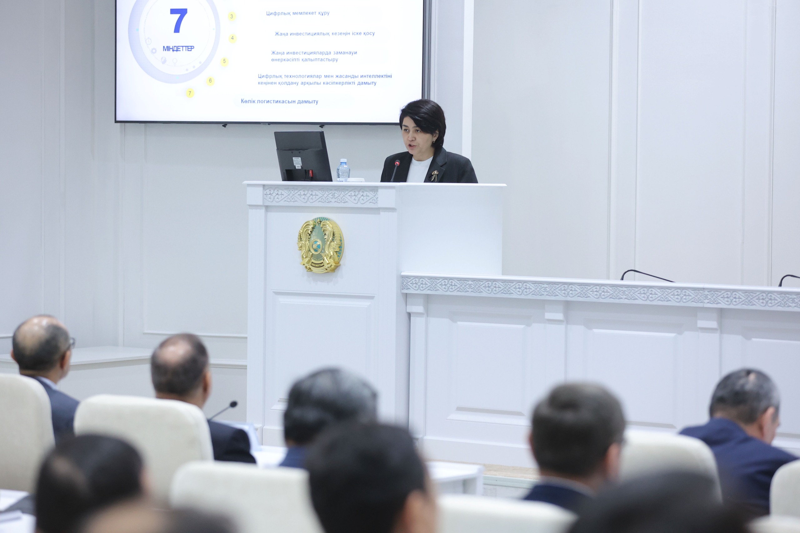 Өңір басшысы Президент ел дамуының жаңа кезеңіне арналған 7 стратегиялық міндетті айқындап бергенін атап өтті. Олардың қатарында инфляция деңгейін тежеу, жаңа Салық кодексін тиімді енгізу, цифрлық мемлекет құру, инвестиция тарту, заманауи өнеркәсіптің негізін қалыптастыру, цифрлық технологиялар мен жасанды интеллектіні кеңінен қолдану және көлік-логистикасын дамыту шаралары бар.