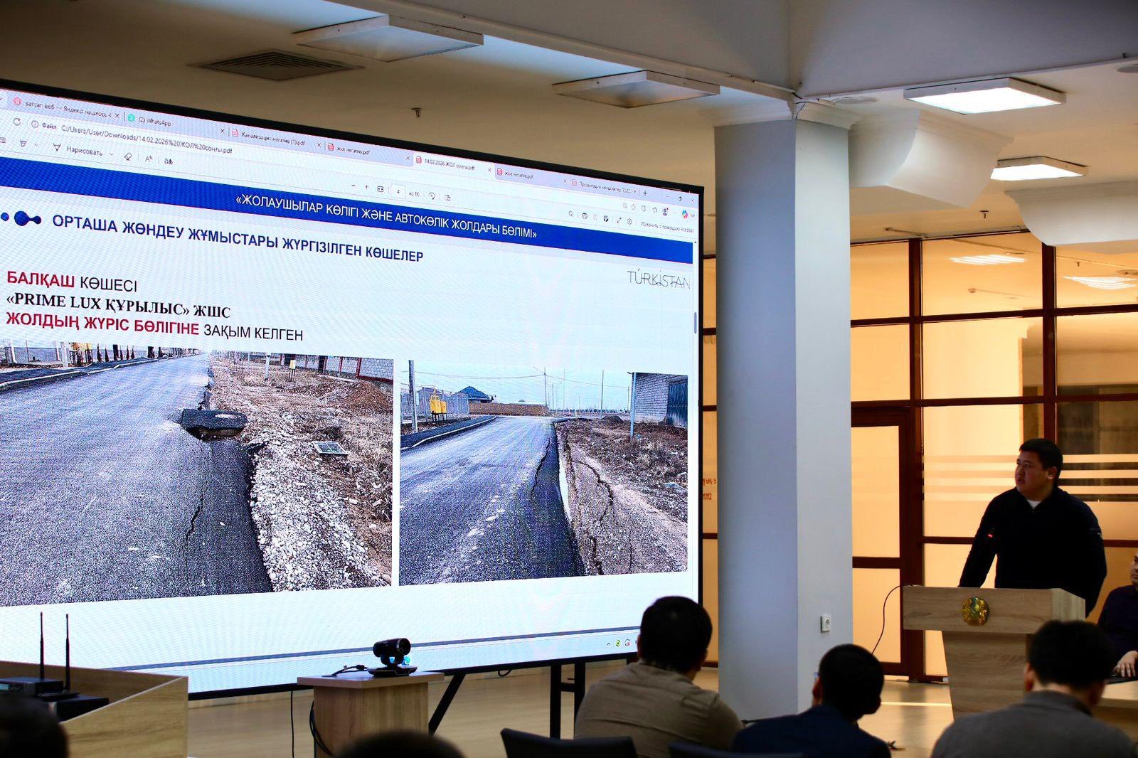 Коммуналдық шаруашылық бөлімінің басшысы Арман Оспан мен Жолаушылар көлігі және автокөлік жолдары бөлімінің басшысының міндетін атқарушы Бексұлтан Ыдырыс кәріз жүйесі тартылған көшелердегі қалпына келтіру жұмыстарының барысын баяндап, бірқатар мердігерлер тарапынан жіберілген олқылықтарды, техникалық талаптардың сақталуы жөнінде есеп берді.