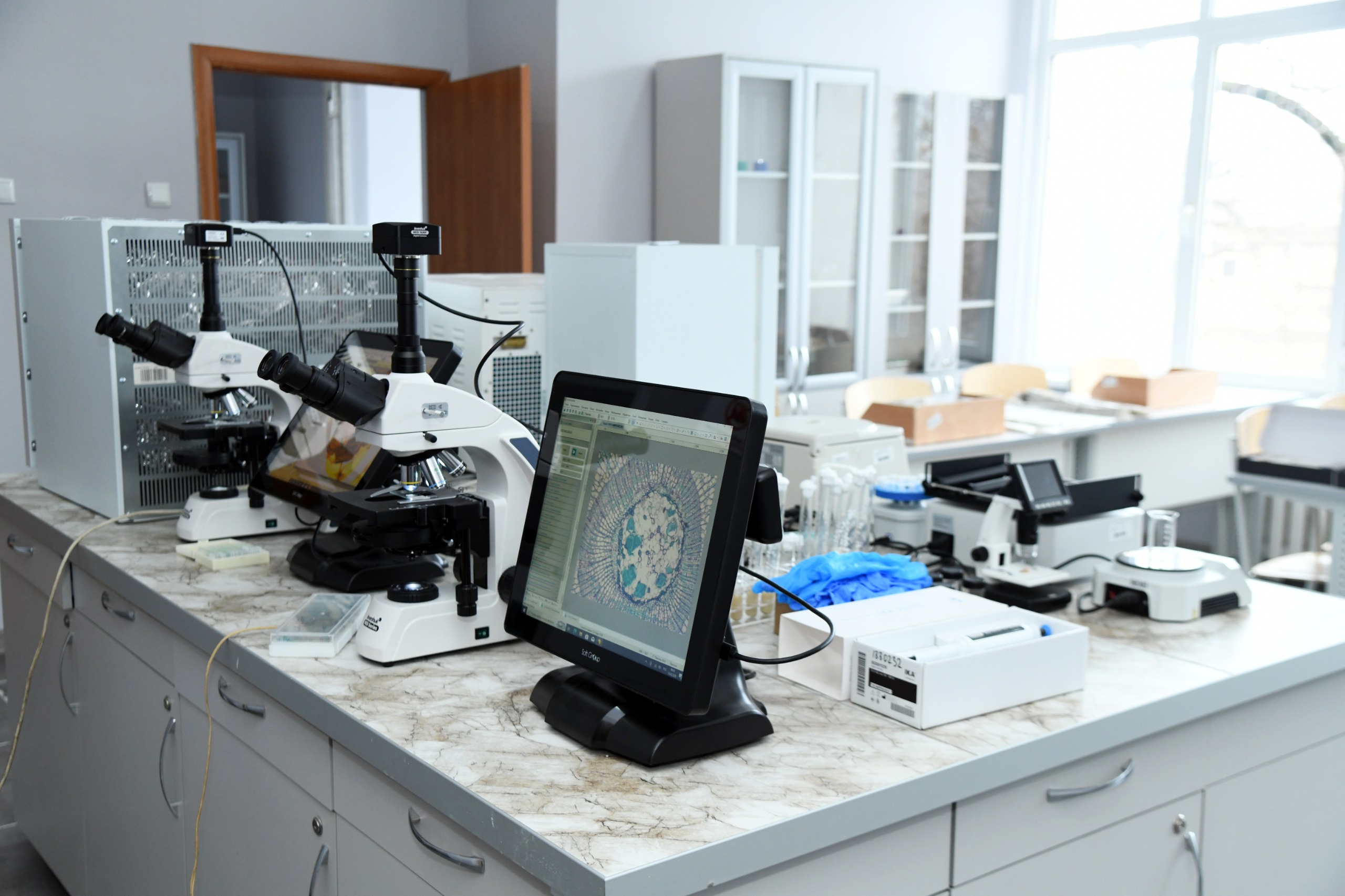 – Бұл зертхана соңғы үлгідегі эксперименттік құрал-жабдықтармен жабдықталды. Мысалы, микроскоптар арқылы ұлпалардың өлшем-бірліктеріне дейін көре аламыз. Климаттық камерамен өсімдіктердің меристемалық ұлпаларын және микроскопиялық саңыраулақтарды өсіруге мүмкіндік береді. Өсімдіктің ауруға қарсы иммунитеттік генін анықтауға ПЦР анализ машинасы да орнатылды. Сондықтан, эксперименталды биология зертханасының зерттеу мүмкіндігі өте жоғары, – дейді PhD доктор, қауымдастырылған профессор Қанат Ғалымбек.
