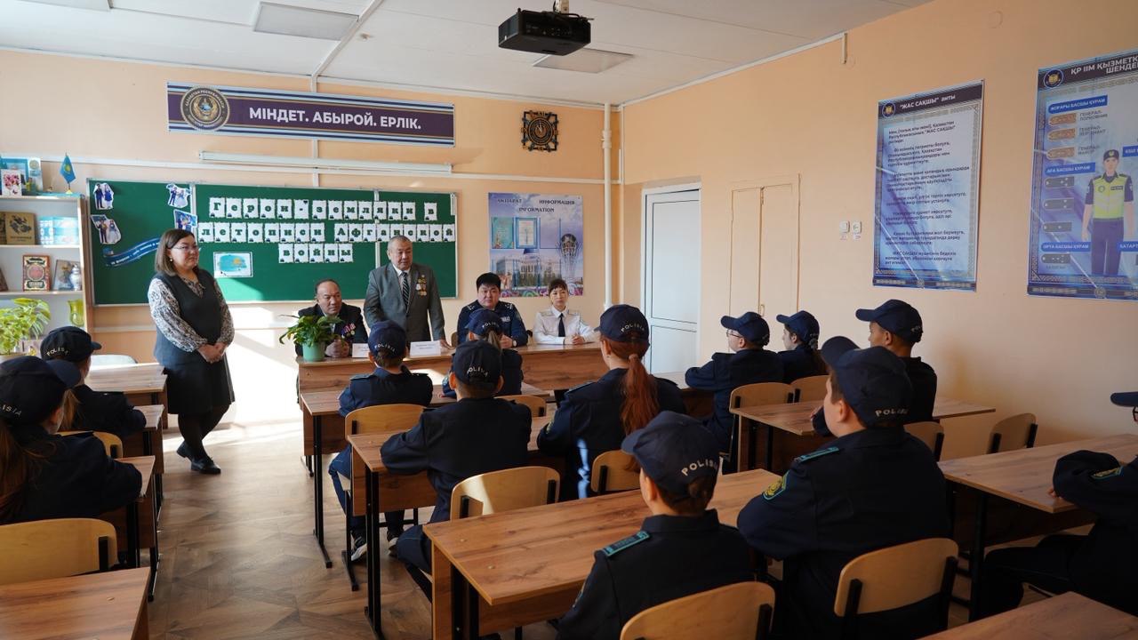 Сұхбат барысында ардагерлер болашақ полицейлермен өздерінің жауынгерлік өткен күндері мен көпжылдық қызметтік тәжірибелері туралы сыр шертті. Олар офицерлік намыс, антқа адалдық және Отанға қалтқысыз қызмет ету әрбір тәртіп сақшысы үшін басты қағида екенін баса айтты. Тәжірибелі тәлімгерлер полиция жолы тек мықты физикалық дайындықты ғана емес, ең алдымен қоғам алдындағы жоғары адамгершілік жауапкершілікті талап ететінін атап өтті.