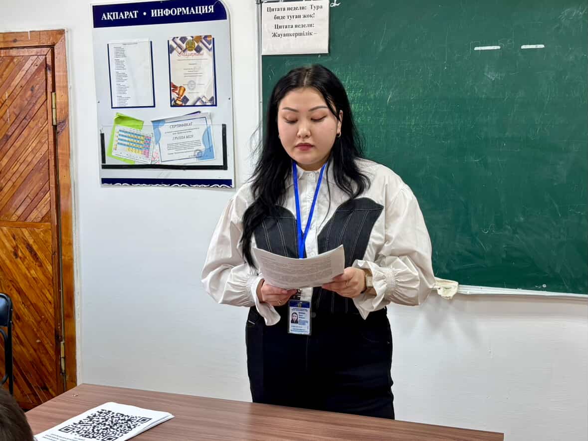 «Заң мен тәртіп» қағидатын іске асыру аясында 2026 жылдың 16 ақпанында құқықтық түсіндіру жұмысы және заңгерлік қызмет көрсету бөлімінің бас маманы Адель Кикимова Қазтұтынуодағы Қостанай жоғары колледжінің 3-курс студенттері үшін «Конституция: негізгі құқықтар, бостандықтар және міндеттер» тақырыбында дәріс өткізді.
