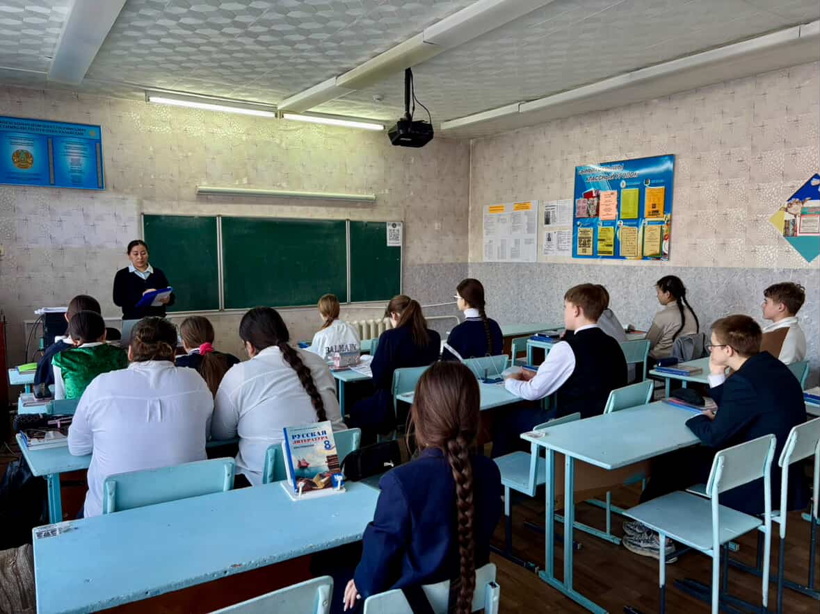 «Заң мен тәртіп» қағидатын іске асыру аясында 2026 жылдың 16 февраля коммерциялық емес ұйымдарды тіркеу және тіркеу қызметі саласындағы бақылау бөлімінің бас маманы Шолпан Галеева 8-сынып оқушыларына «Тұрмыстық зорлық-зомбылықты алдын алу және құқықтық жауапкершілік» тақырыбында дәріс өткізді.