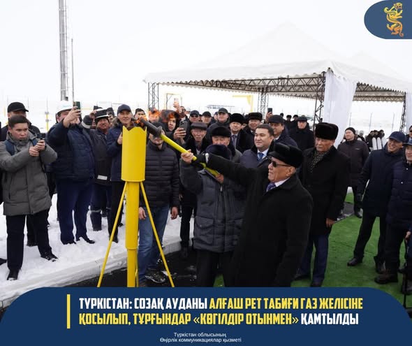 ТҮРКІСТАН: СОЗАҚ АУДАНЫ АЛҒАШ РЕТ ТАБИҒИ ГАЗ ЖЕЛІСІНЕ ҚОСЫЛЫП, ТҰРҒЫНДАР «КӨГІЛДІР ОТЫНМЕН» ҚАМТЫЛДЫ