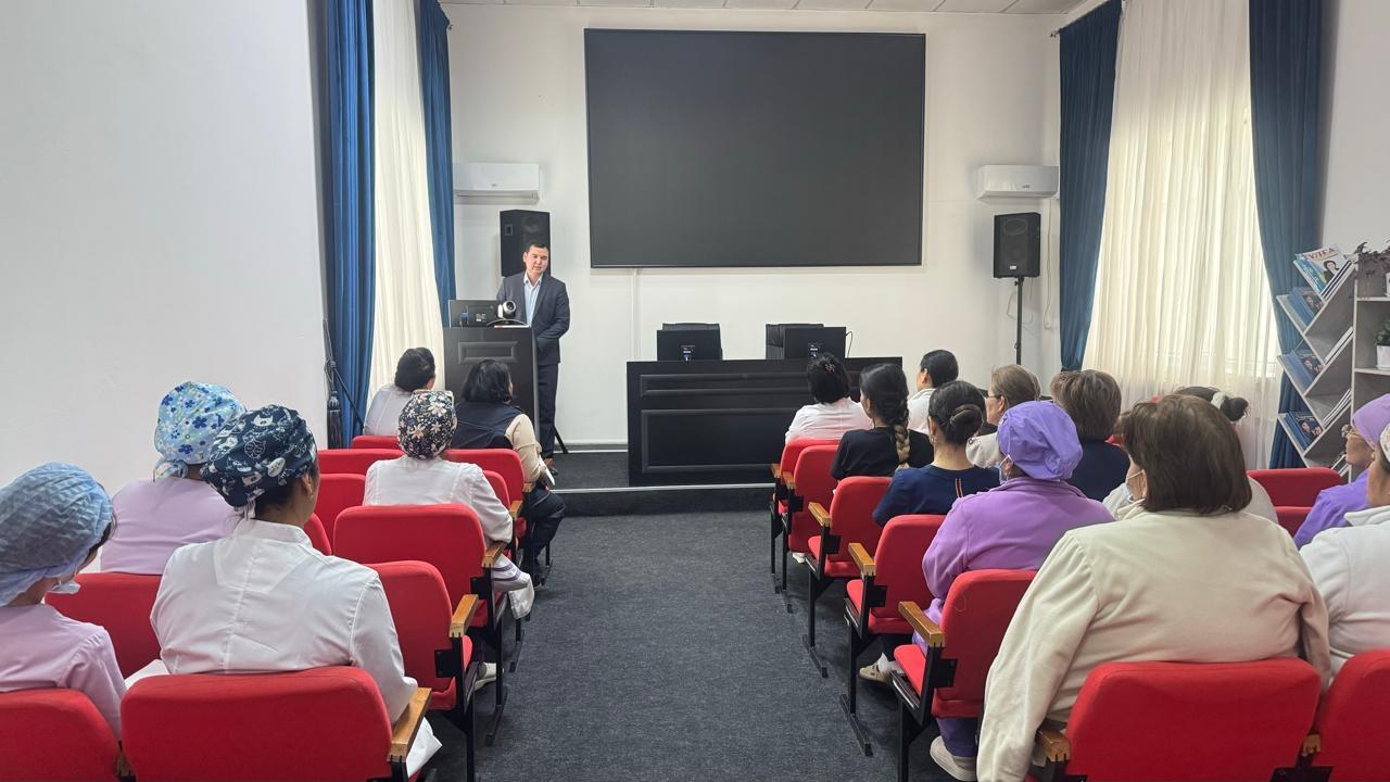 Кездесу барысында Алдияр Шаниярұлы “Төлеби аудандық ауруханасы” ШЖҚ МКК-ның қызметкерлеріне еңбек кодексінің заңнамалық талаптарына түсіндірме бере отырып, еңбек қауіпсіздігі мен еңбекті қорғау талаптарын жүзеге асыру, “enbek.kz” порталына штаттық кестені енгізу жүйесіне түсіндірме жұмыстарын жүргізді.