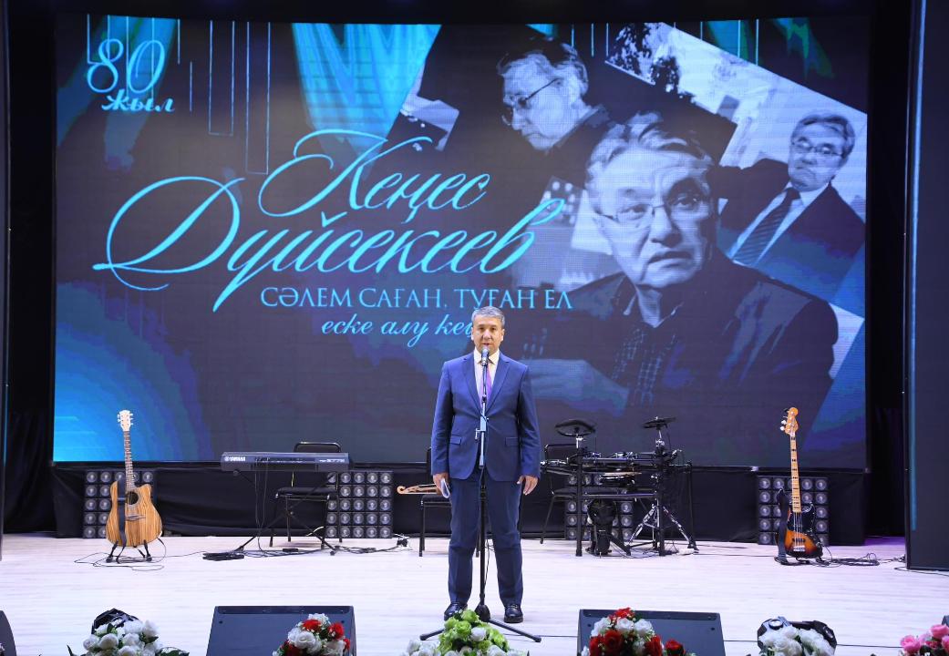 Роза Бағланова атындағы аудандық мәдениет үйінде өткен шарада аудан әкімі Алмасбек Есмаханов сөз сөйлеп, өнер қайраткерінің киелі топырақта дүниеге келіп, қазақ ән өнеріне қосқан үлесі жайында сөз қозғады. Сондай-ақ шараға арнайы келіп, қатысып жатқан Кеңес Дүйсекеевтің жары Баян Дүйсекеевaға жаулық жауып, құрмет көрсетті.