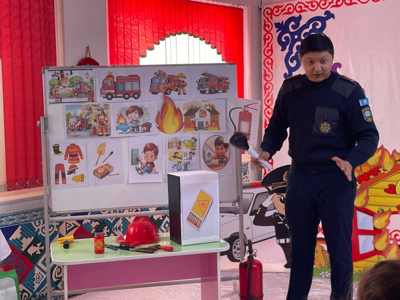 Сарысу ауданы Төтенше жағдайлар бөлімі қызметкерлері «Сайн» балабақшасында ұжымға өрт қауіпсіздігі және балалардың терезеден құлау қаупінің алдын алу тақырыптарында түсіндіру жұмыстарын өткізді. Кездесу барысында өрттің алдын алу шаралары, электр құралдарын қауіпсіз пайдалану, эвакуациялау тәртібі және төтенше жағдай кезіндегі әрекеттер түсіндірілді. Сондай-ақ балалардың терезеден құлауын болдырмау үшін қорғаныш торларын орнату, арнайы құлыптар қолдану және балаларды қараусыз қалдырмау қажеттігі айтылды. Іс-шара интерактивті форматта өтіп, қатысушылар өз сұрақтарына жауап алды. Негізгі мақсат – жазатайым оқиғалардың алдын алу және балалардың қауіпсіздігін қамтамасыз ету.