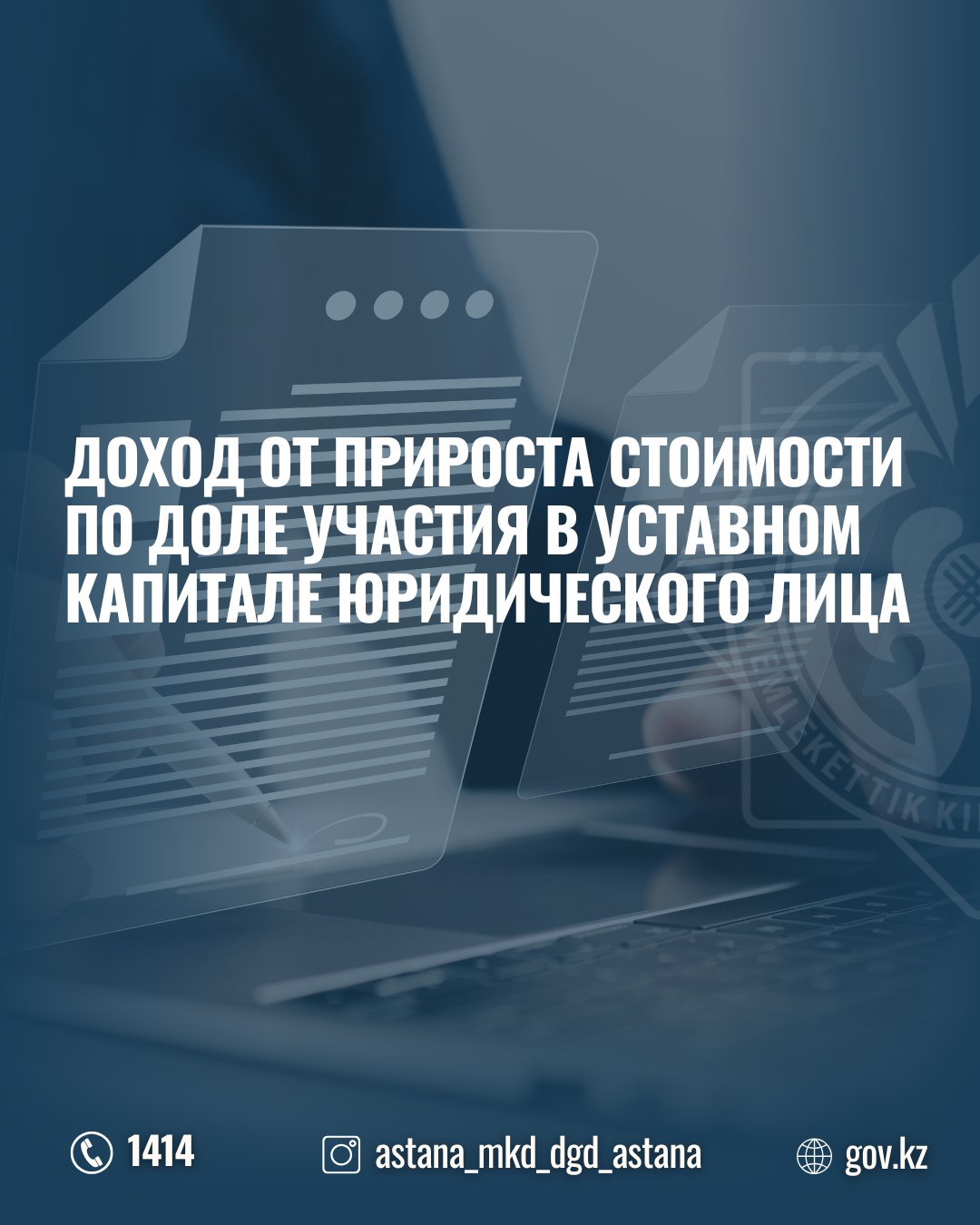 Заңды тұлғаның жарғылық капиталындағы қатысу үлесінің құнының өсуінен түсетін табыс болып мыналар табылады: