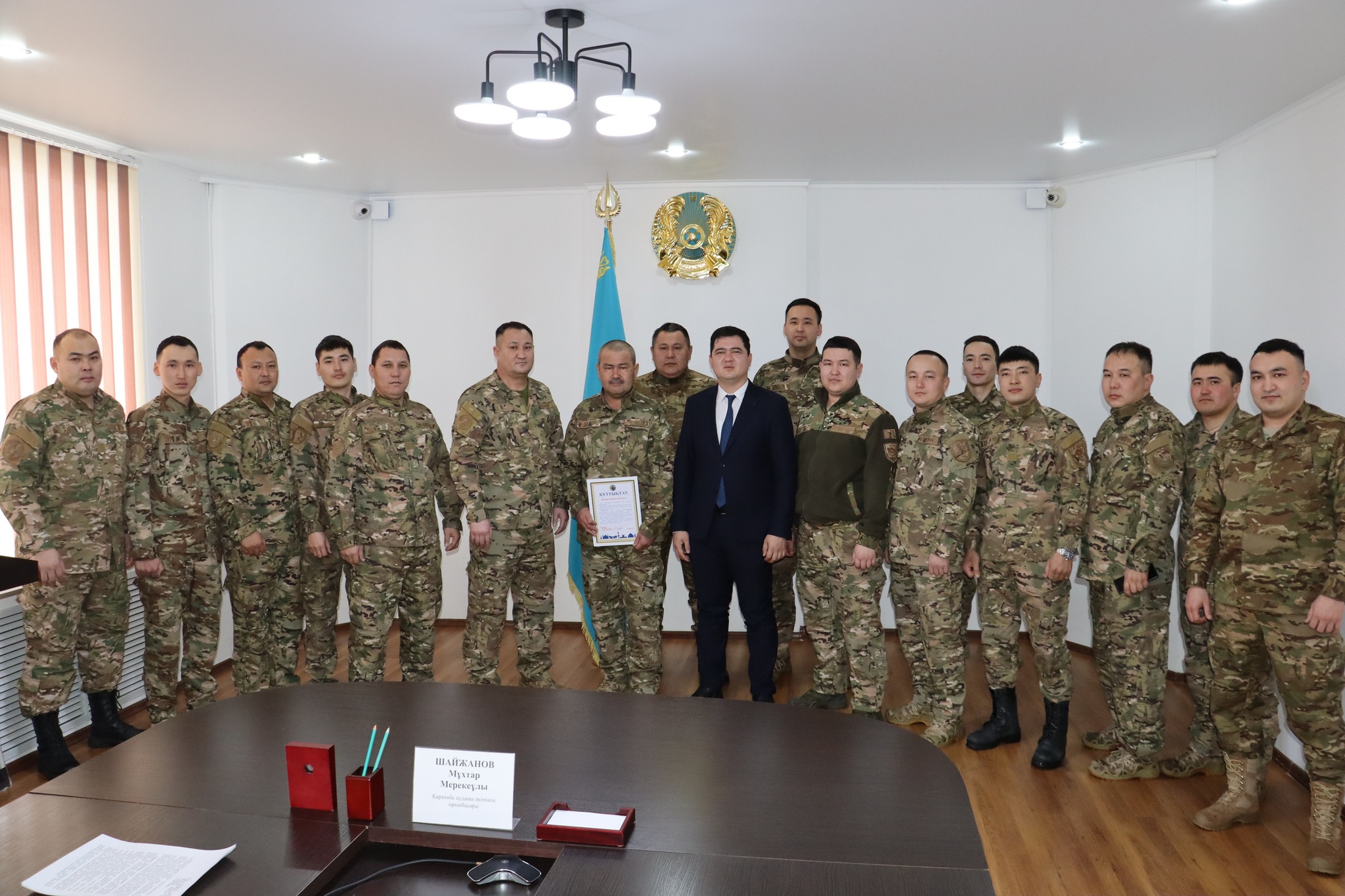 Аудан әкімінің орынбасары Мұхтар Мерекеұлы азаматтық қорғау саласында ұзақ жылдар қызмет жасаған Болатбек Еркінбекұлын зейнет жасымен құттықтап, мерейлі жас иесіне құттықтау хат табыстады.