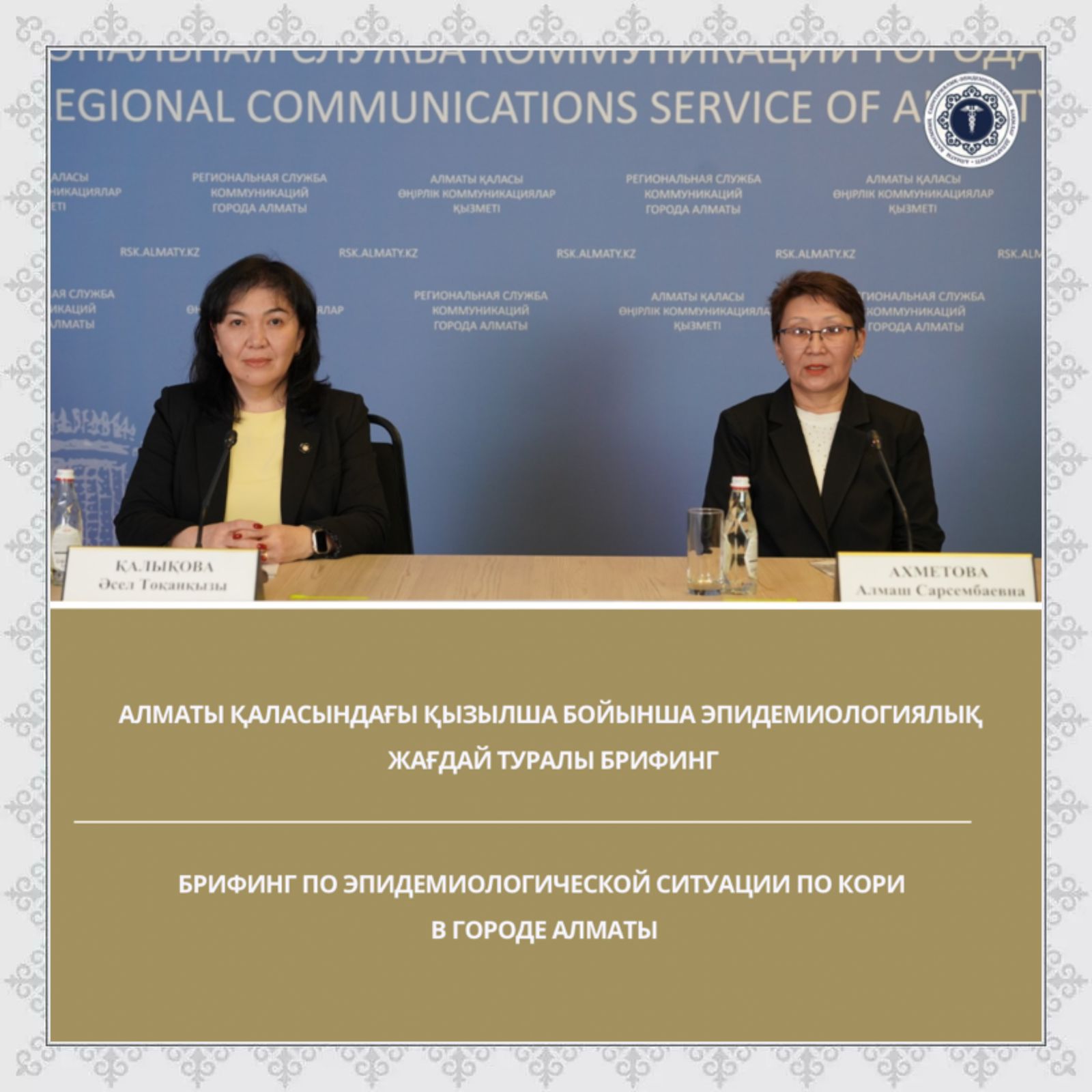 Брифинг барысында Алматы қаласының санитариялық-эпидемиологиялық бақылау департаменті басшысының орынбасары Әсел Тоқанқызы Қалықова мен Департаменттің инфекциялық және паразиттік ауруларды бақылау бөлімінің басшысы Алмаш Сәрсембайқызы Алматы қаласындағы қызылша бойынша эпидемиологиялық жағдай туралы баяндама жасады.