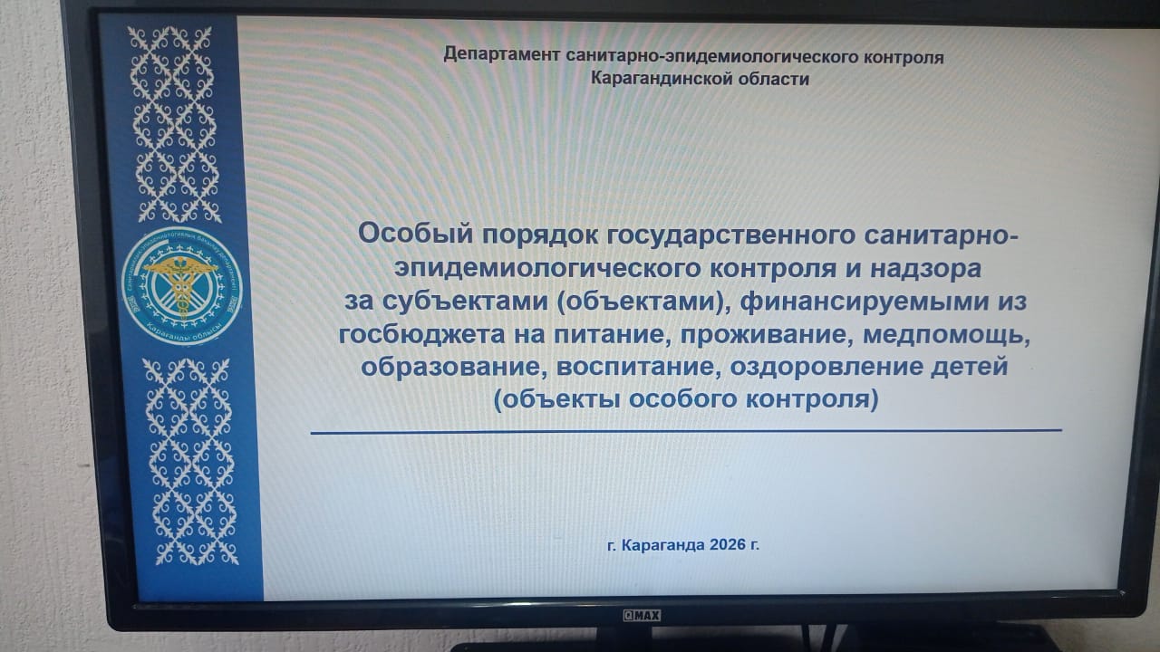 Департамент бөлімінің басшысы М. Белгібаева “Халық денсаулығы және денсаулық сақтау жүйесі туралы” Қазақстан Республикасының Кодексіне енгізілген өзгерістер мен толықтыруларға сәйкес балаларды қорғау саласындағы мемлекеттік санитариялық-эпидемиологиялық бақылаудың жаңа форматын түсіндірді, кеңеске қатысушылардың назарын “Білім туралы” Қазақстан Республикасы Заңының білім алушылардың тамақтануын ұйымдастыруды бақылауға қойылатын жаңа талаптарына аударды.