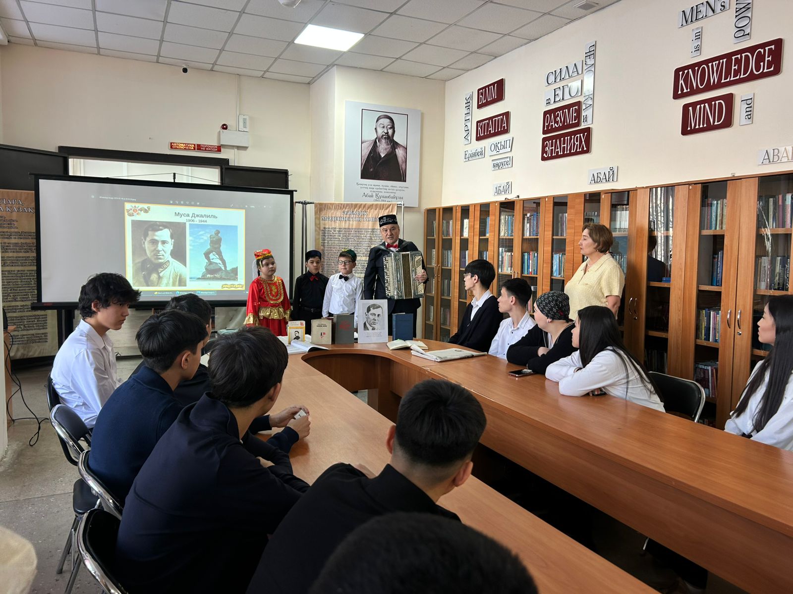 «Семей қаласының орталықтандырылған кітапхана жүйесі» КММ-нің Қалалық орталық кітапхана қызметкерлері №31 мектептің 10 сынып оқушыларының қатысуымен татар ақыны Мұса Жалилдің туғанына 120 жыл толуына арналған «Қалам мен қайраттың иесі» атты портрет кешін өткізді.